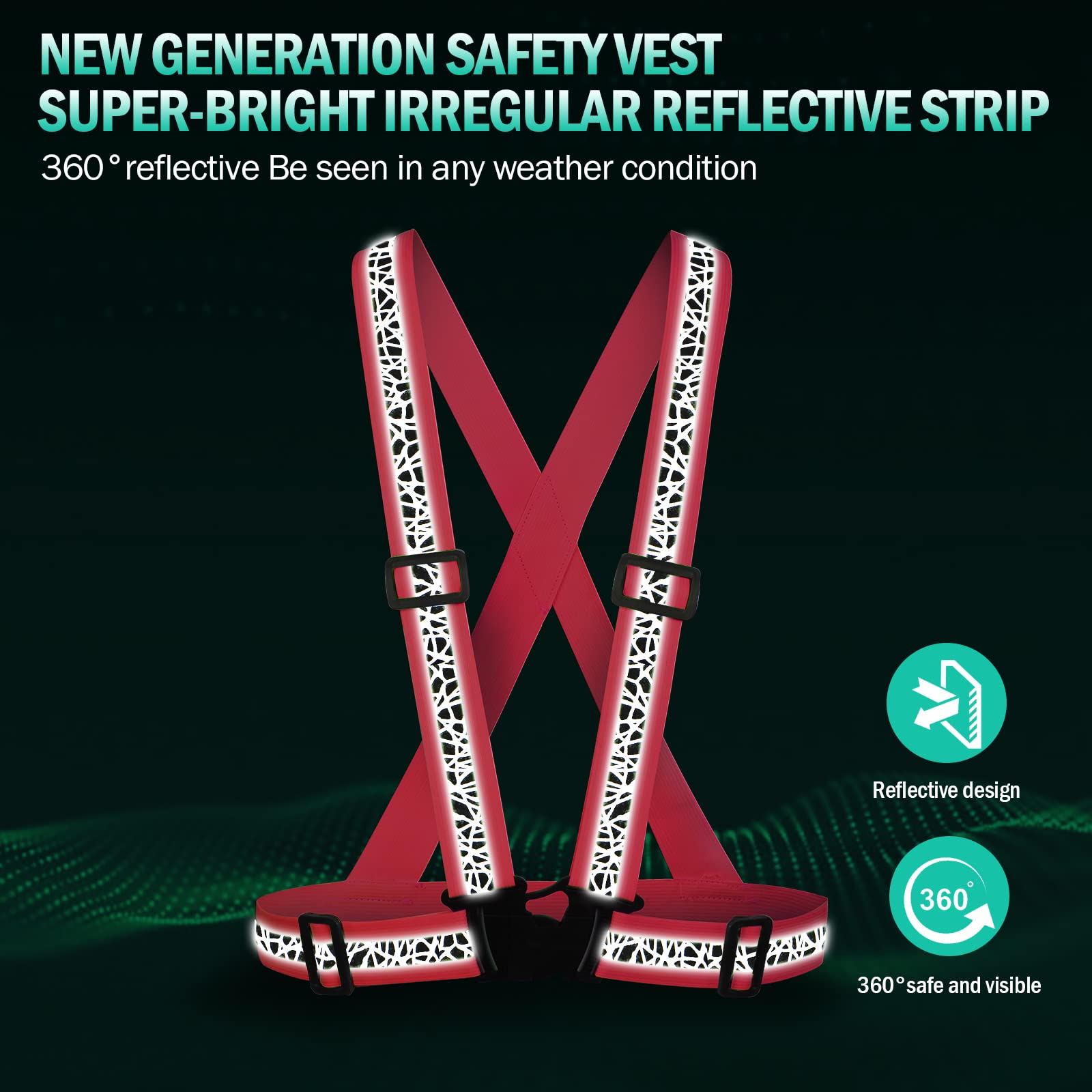 - Upgrade Reflective Running Vest: Super-bright modern reflective stripes on the reflective Straps offers 360°visibility, Great for running in the morning in the dark or in the night where you can be seen by cars.