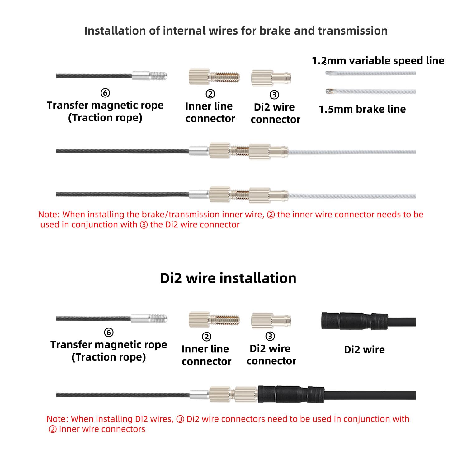 - 3.After completing the installation of the brake oil pipe, it is necessary to cut off the 10mm connection at the end of the oil pipe to prevent oil leakage. .A bicycle brake line pipe with an outer diameter of 5mm, a bicycle oil pipe with an outer diameter of 5mm, shift cable/housing, brake cable/housing inner steel wire, and Di2 wire.