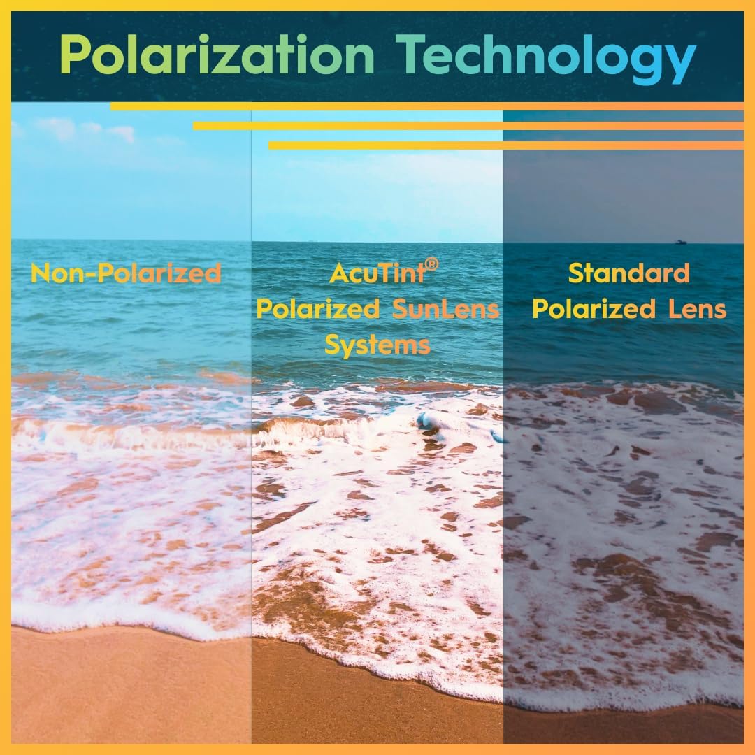 - ACUTINT POLARIZED LENS SYSTEM. Flying Fisherman’s AcuTint Lens System enhances color contrast, sharpens visual clarity, and blocks 100% of harmful UV rays. The polarizing filter eliminates reflected glare and enables you to see beneath the water’s surface to spot fish and underwater structure – a must for fishing or boating.