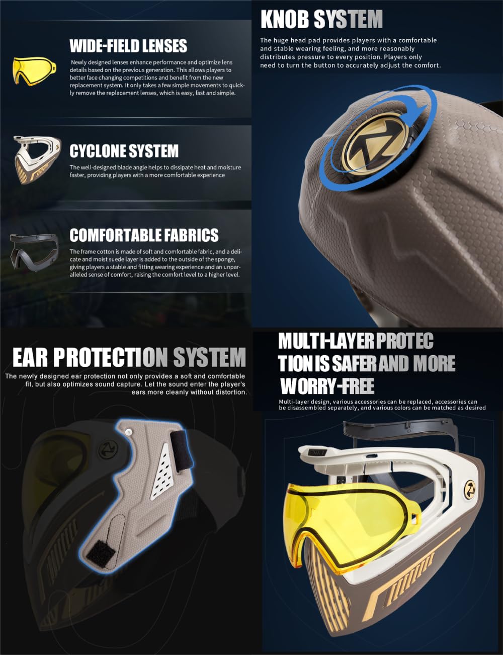 FMATAL GEAR F5 Strom Goggle Mask 2024Version for Paintball Gaming Training (Black Lens)