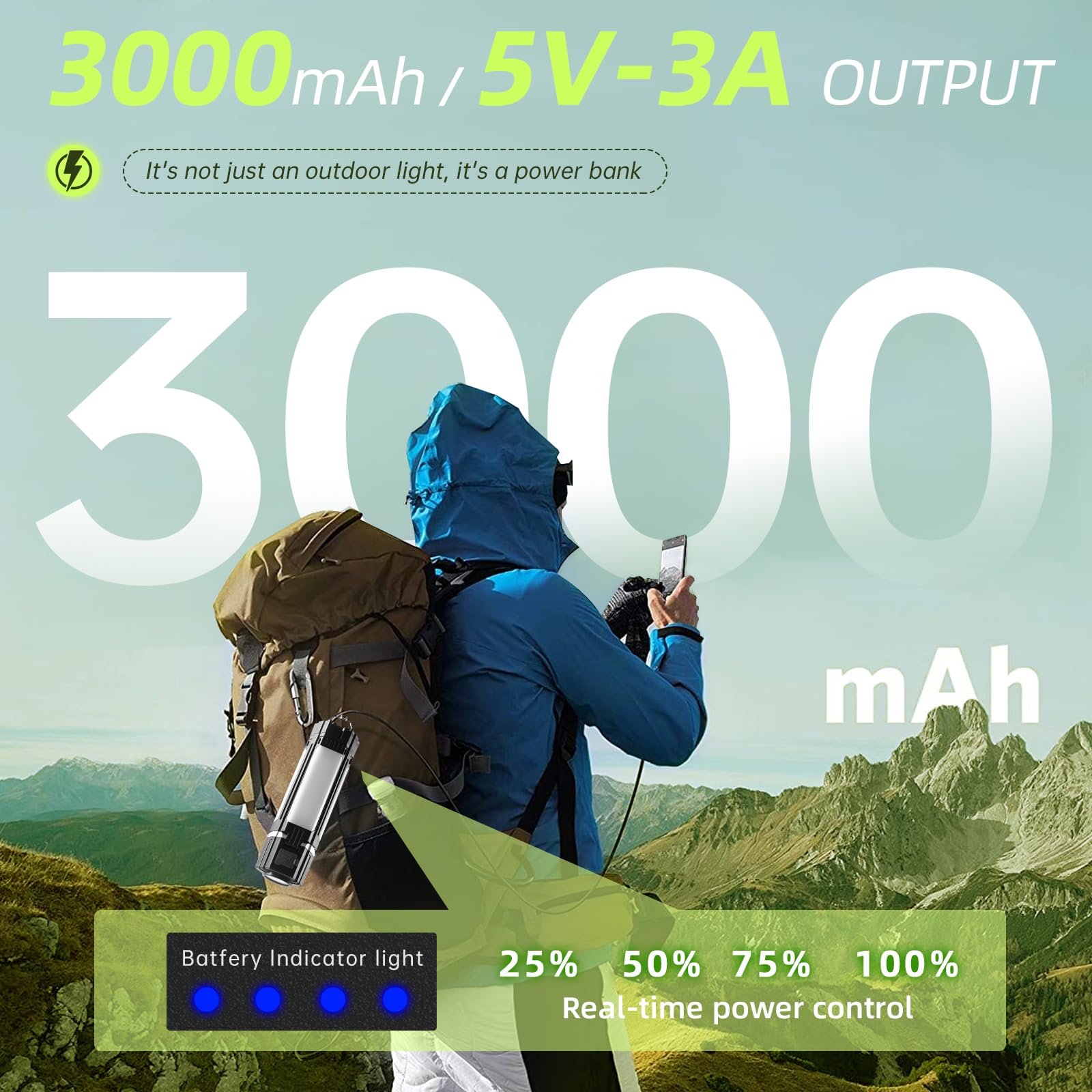 - 2.【Multi-Function】 - Unique design makes it can be used as a camping light for tents, a delicate and portable flashlight, and a backup mobile power source. It can be used in all outdoor scenes, and is a must-have for outdoor traveling!