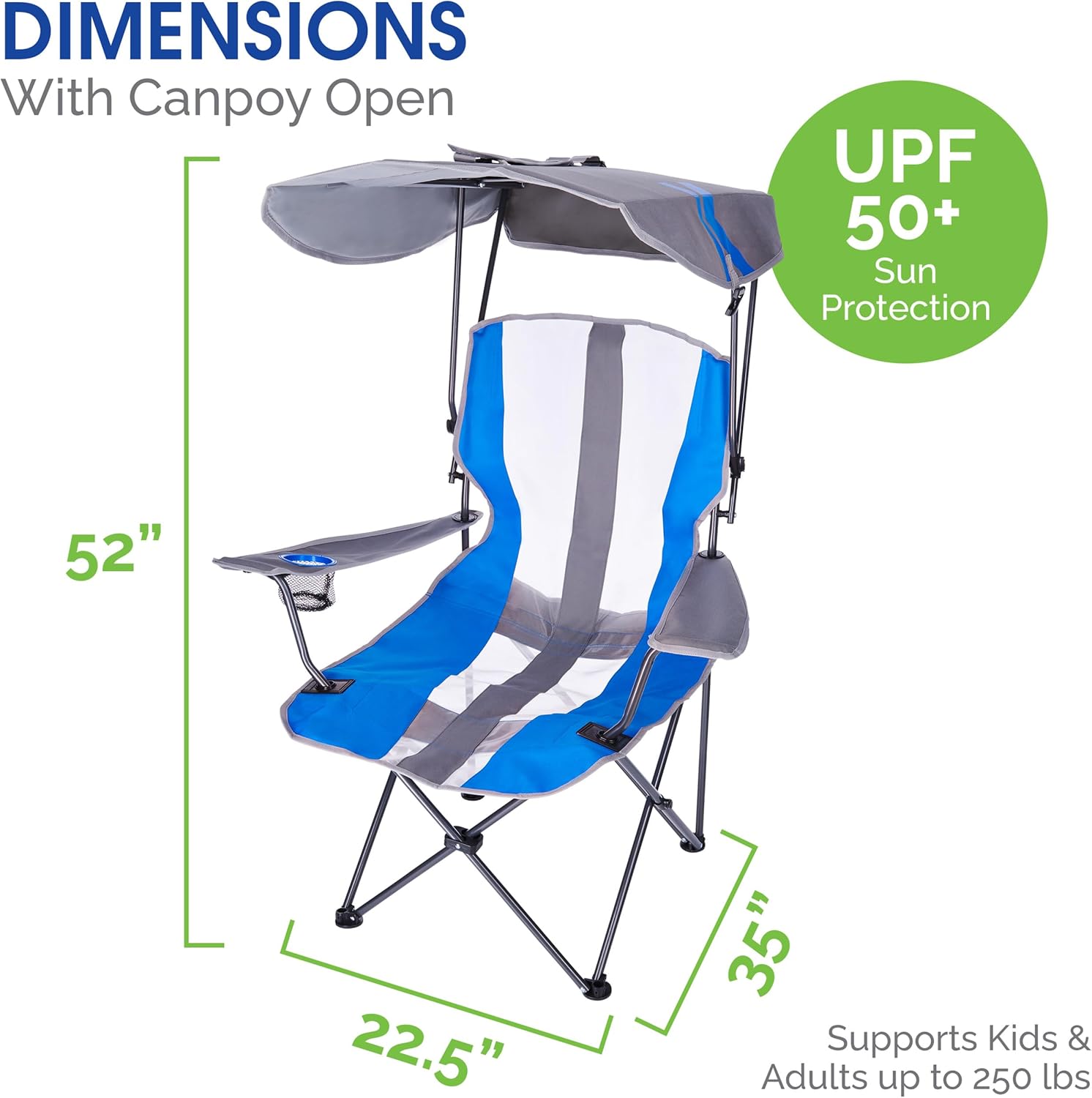 - INCLUDES ONE LAWN CHAIR: Measures 37"L x 24"W x 58"H and can support kids and adults up to 250 lbs