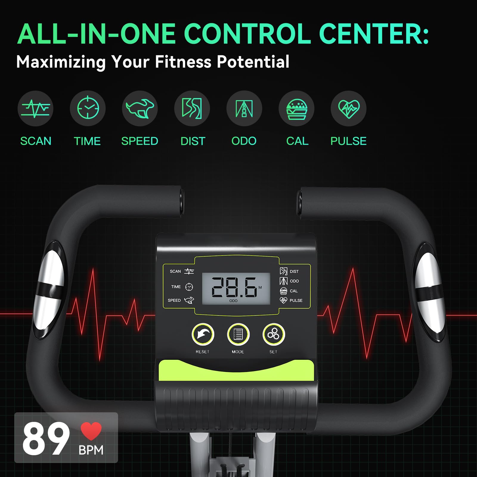- SAVE SPACE & MOVE EASILY: The portable bike is easily adjustable, allowing for quick folding and upright. Its design enables easy storage in a small area, making it an ideal choice for small apartments or offices. The foldable bike comes with rollers on the front feet, facilitating effortless movement. Whether you're aiming to save space or seeking a portable exercise option, this workout bike for home gym is the ideal solution.