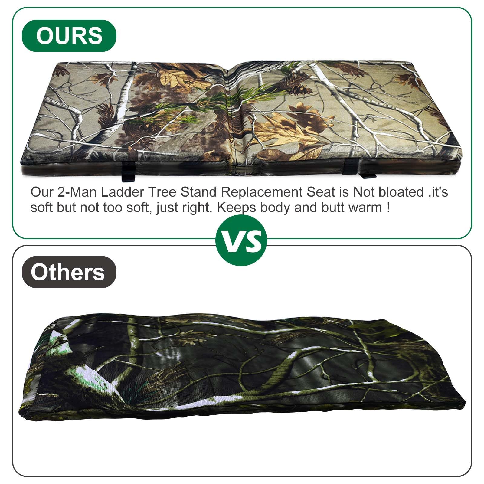 - 【Application】:The double treestand seat pad are easy to use, just tie down the strap on each end of the pad to the treestand. The tree stand replacement seat pad is also the hunting essential for a variety of hunting scenarios.