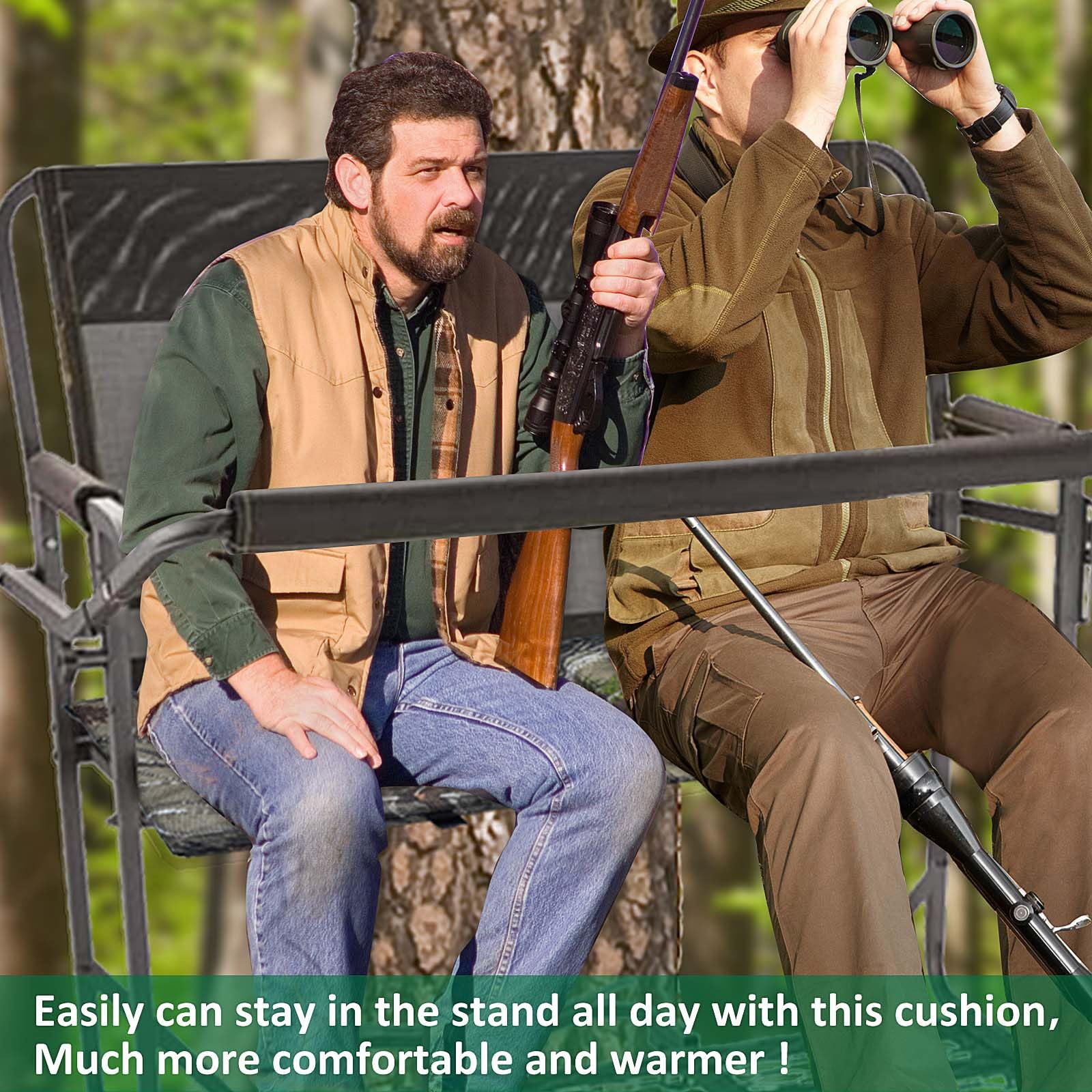 - 【Foldable Design】:The foldable design make it not suitable for two men tree stand but for one-man tree stand,simply fold the cushion over and have a double plush pad,more comfortable and warmer.
