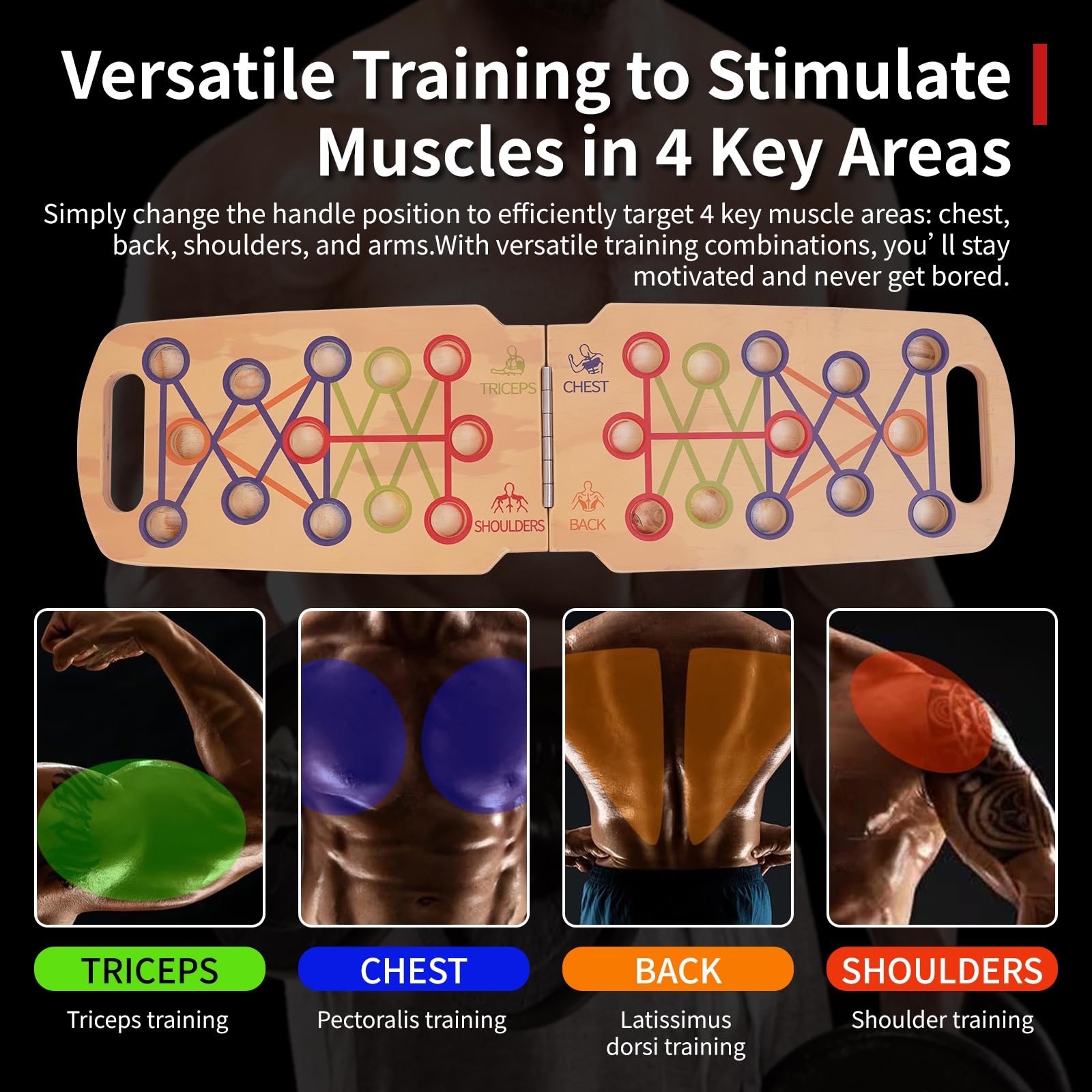 Foldable wooden Push up Board, Portable Push up Stand 14 in 1 Muscle Builder with Graphics Guide and 2 Solid Wood Pushup Handles, Pectoral and Biceps Strength Trainer