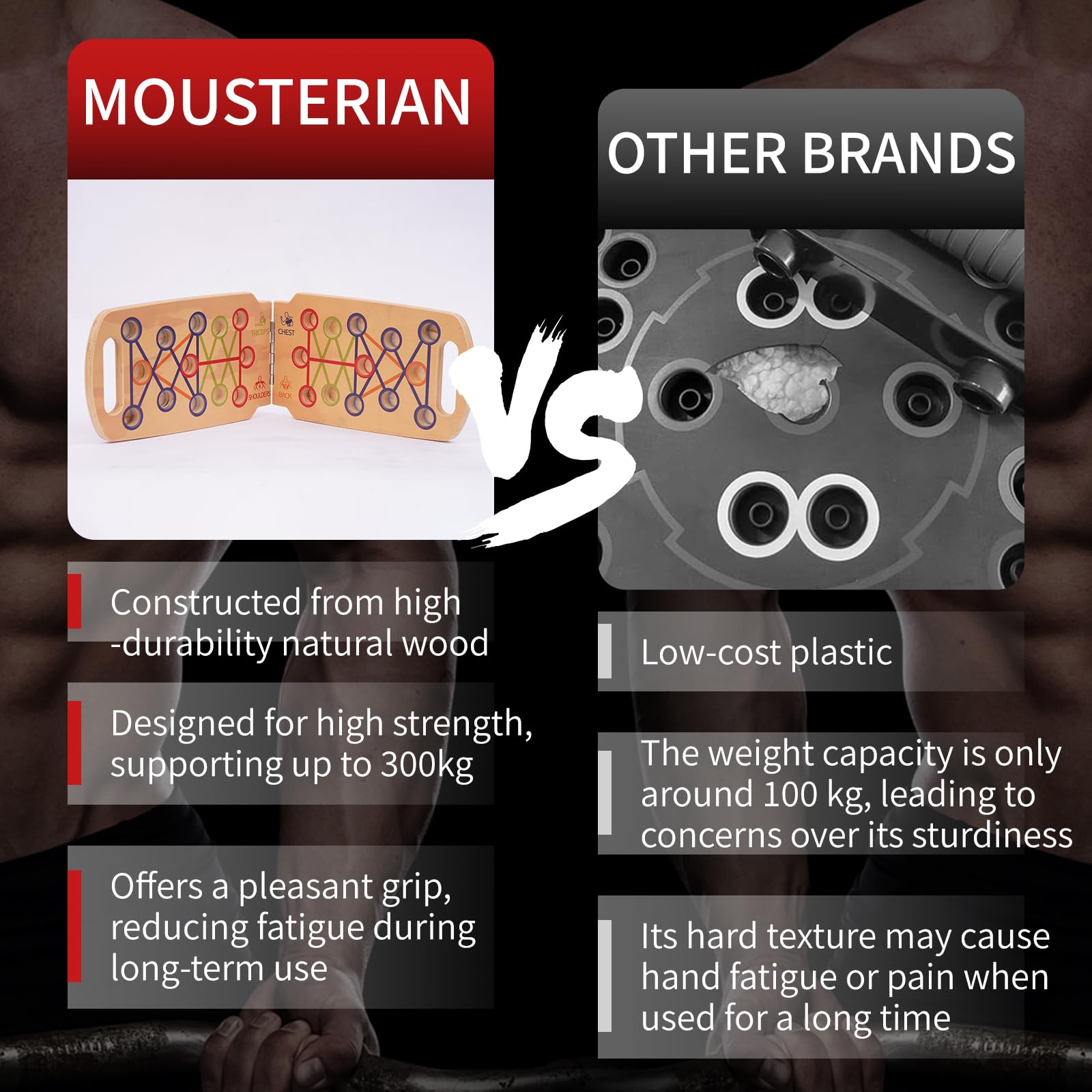 - 【MATERIAL & NON-SLIP】 Pushup board are made of high-quality solid wood material.Non-slip handles conforms to ergonomic design.Helps to distribute force evenly.Non-slip plugs help stabilize the body during exercise.