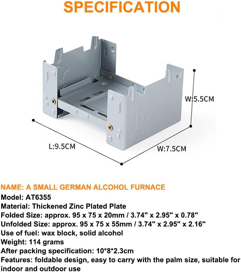 - [Foldable Design] Compact, palm-sized stove that folds for convenient storage and transportation