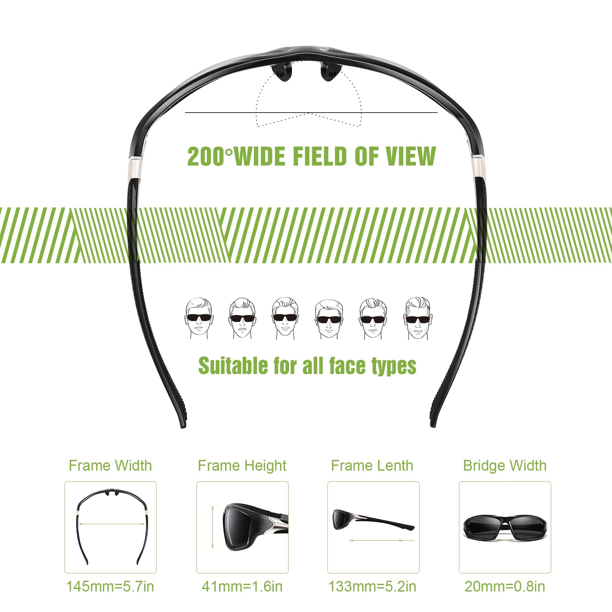 - Premium Materials and Details:Featuring high-quality TAC polarized sunglasses lenses that are scratch-resistant, these sunglasses for men offer long-lasting visual enjoyment. The lightweight PC frame, combined with non-slip rubber nose pads, ensures comfortable and secure wear without slipping. The included strap and pouch make it easy to carry and protect your polarized sports sunglasses