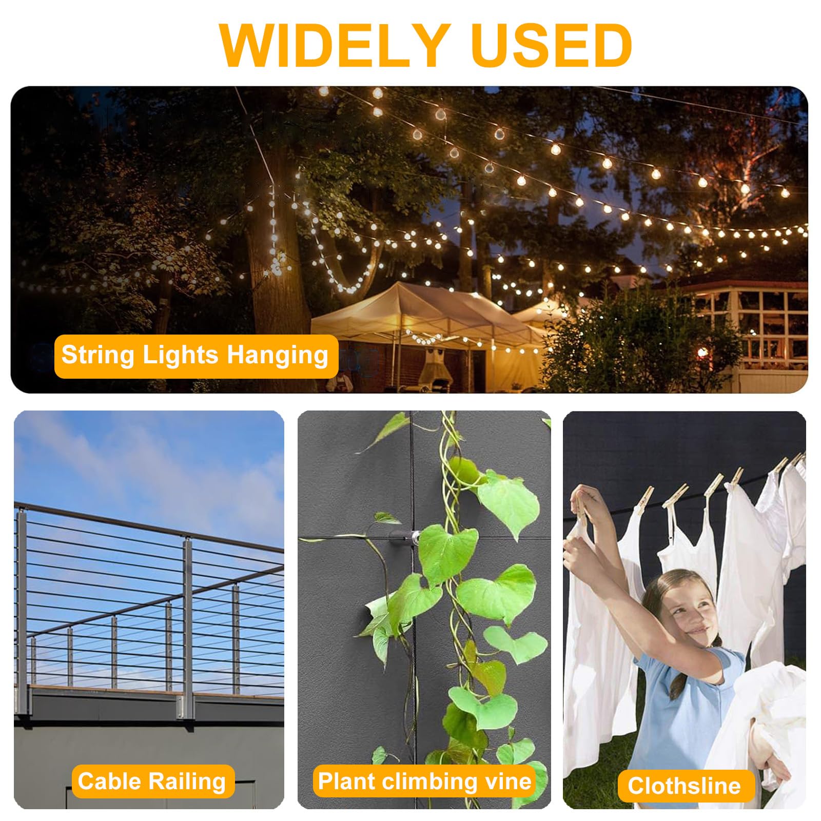 - 【Qualitative Materials】Our wire rope is made of 304 stainless steel,construction: 7 x 7, it has a rated pulling strength of 1460lbs and 5mm black PVC coated.