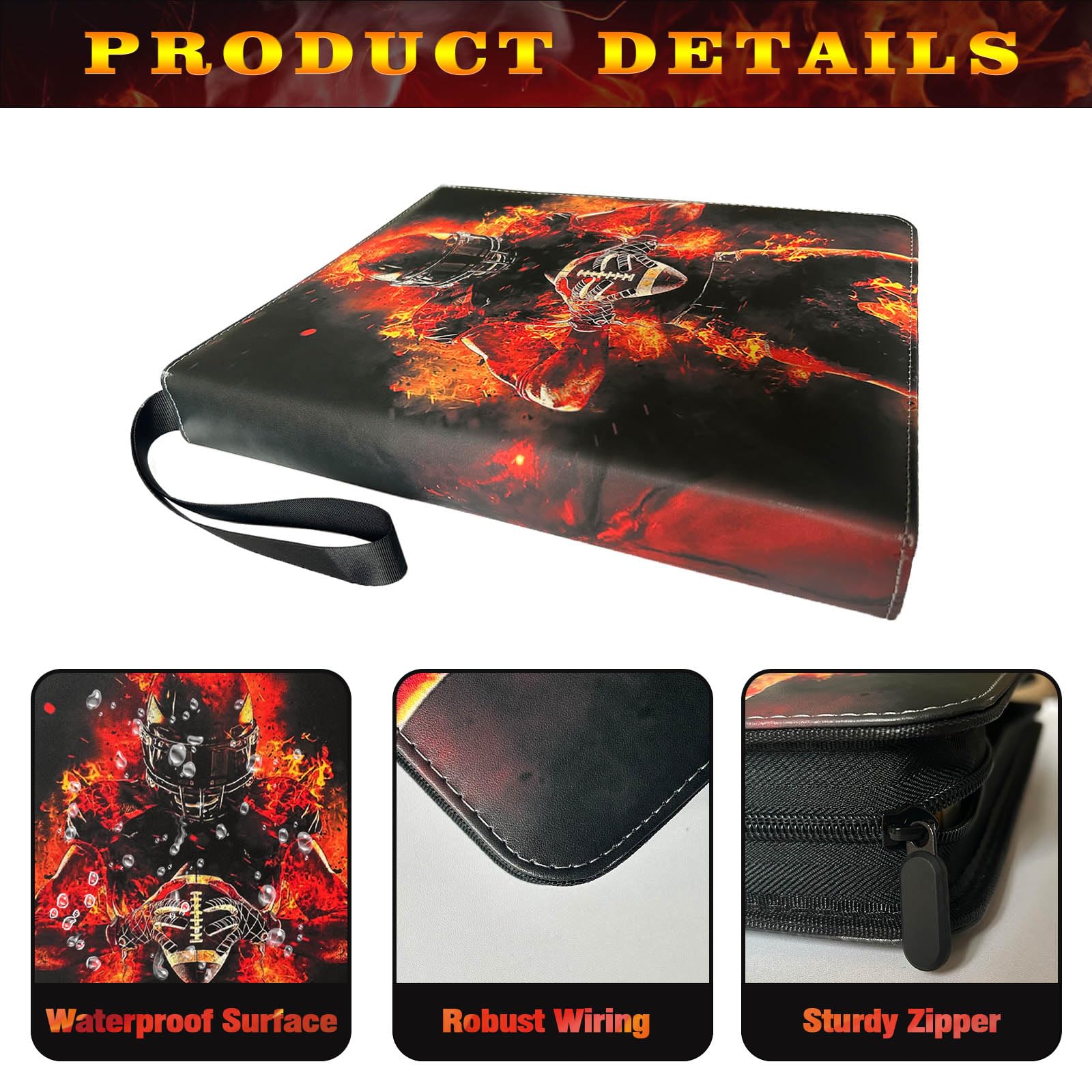 - Durable & Waterproof: The binder for football card design keeps your cards organized and intact at all times; The football card binder design allows you to easily add or remove sleeves for all your collection needs.The trading card booklet case is made from a soft, high-quality PU leather material that is durable, acid-free, waterproof and not prone to breaking.