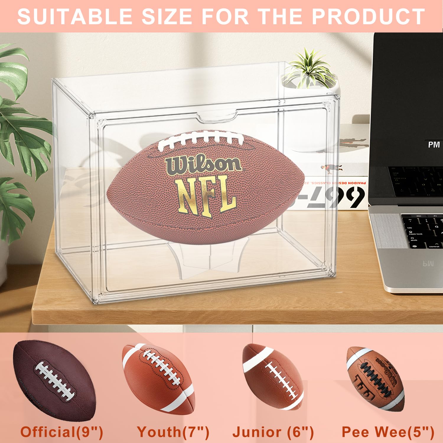 - 🏈Suitable for Official Size Football: The size of the football display box is 14.1"x9.0"x10.6" ,and is perfect for displaying any Official size football. NOTE: The football is NOT included in the package.