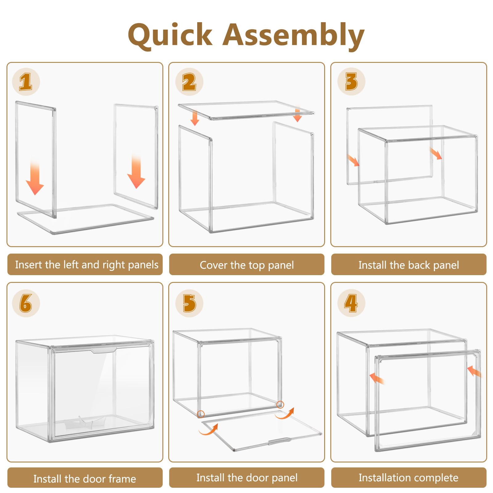 - 【Easy Assemble】The transparent display case consists of 7 transparent panels and a removable stand, you just need to correspond to the grooves to press firmly to install. (Please refer to the instruction manual for detailed installation steps)