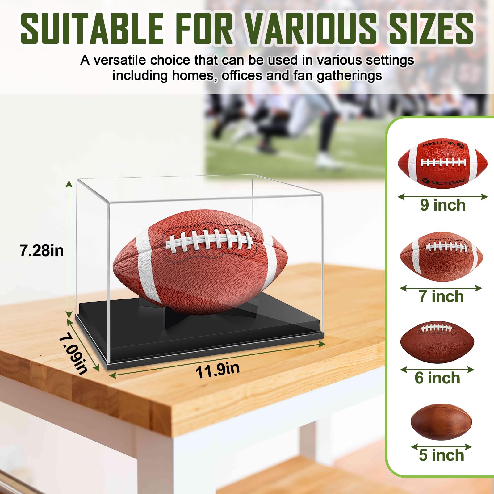 - DUST AND OXIDATION PROTECTION - These football case display case full size are waterproof and dustproof, with a UV protection function, you can place your balls in the display box, which protects your item from fading and always offer ultra-clear viewing. Keep out ash and dust. Great for protecting your cherished keepsakes or collectibles