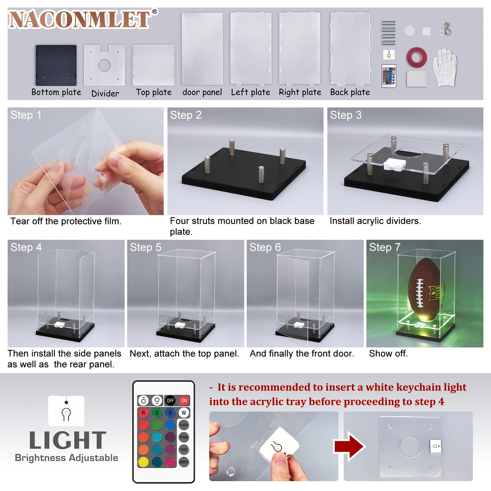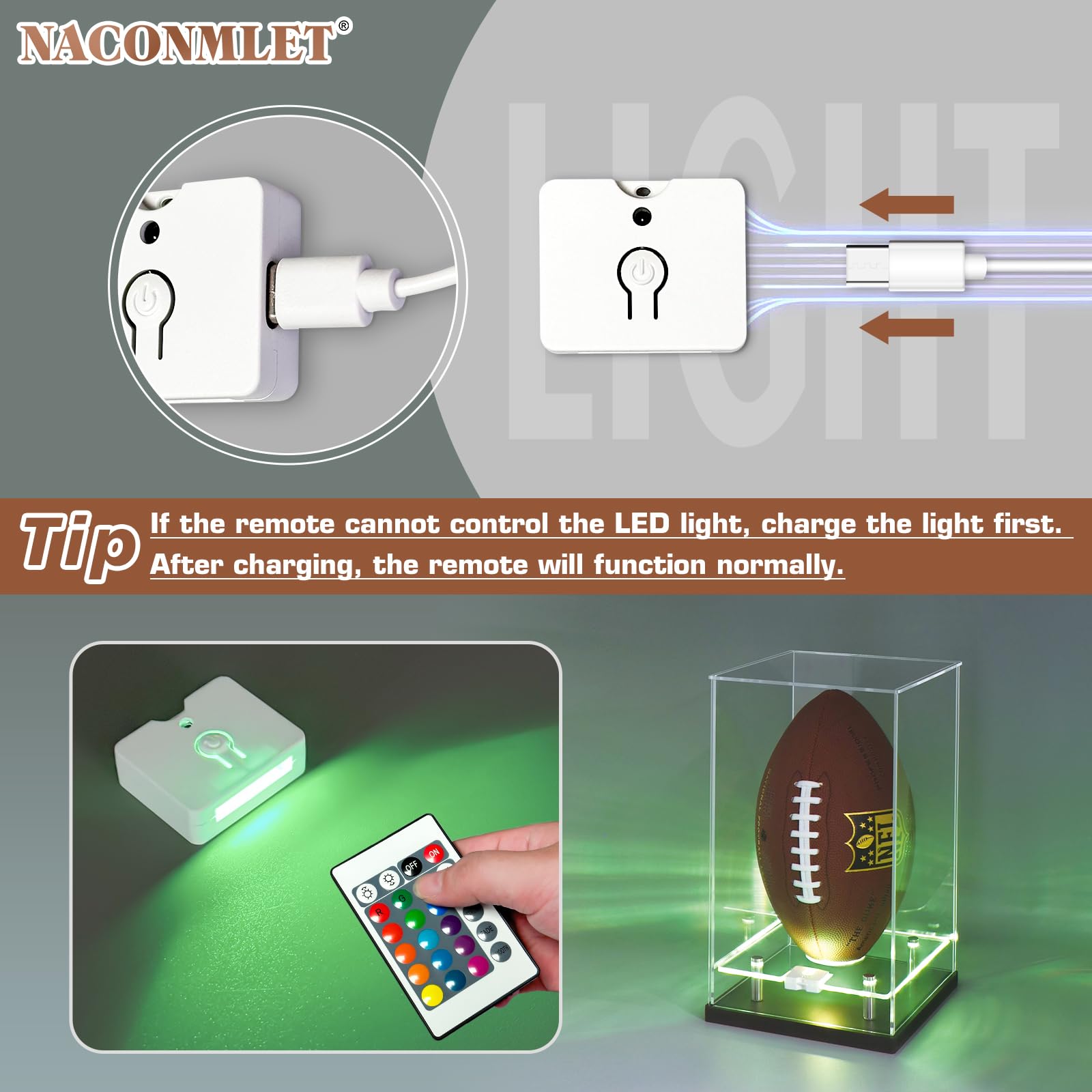 - Good display case:-Enhance your football collection with our unique clear display case featuring portable LED lights. This innovative design ensures your prized football stands out, shining brightly even in low light. Easily control the lights with a remote, making your collection truly impressive.