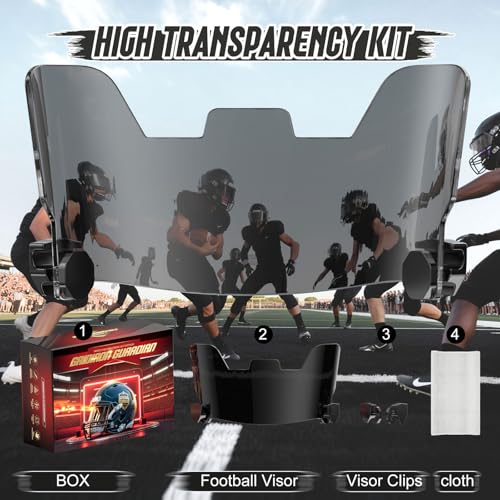 Football Helmet Visor for Mouth Guard Sports Safety - Shatterproof Universal Fit Youth/Adult Lens with QuickLock Clips | ASTM Certified, Hydrophobic Coating