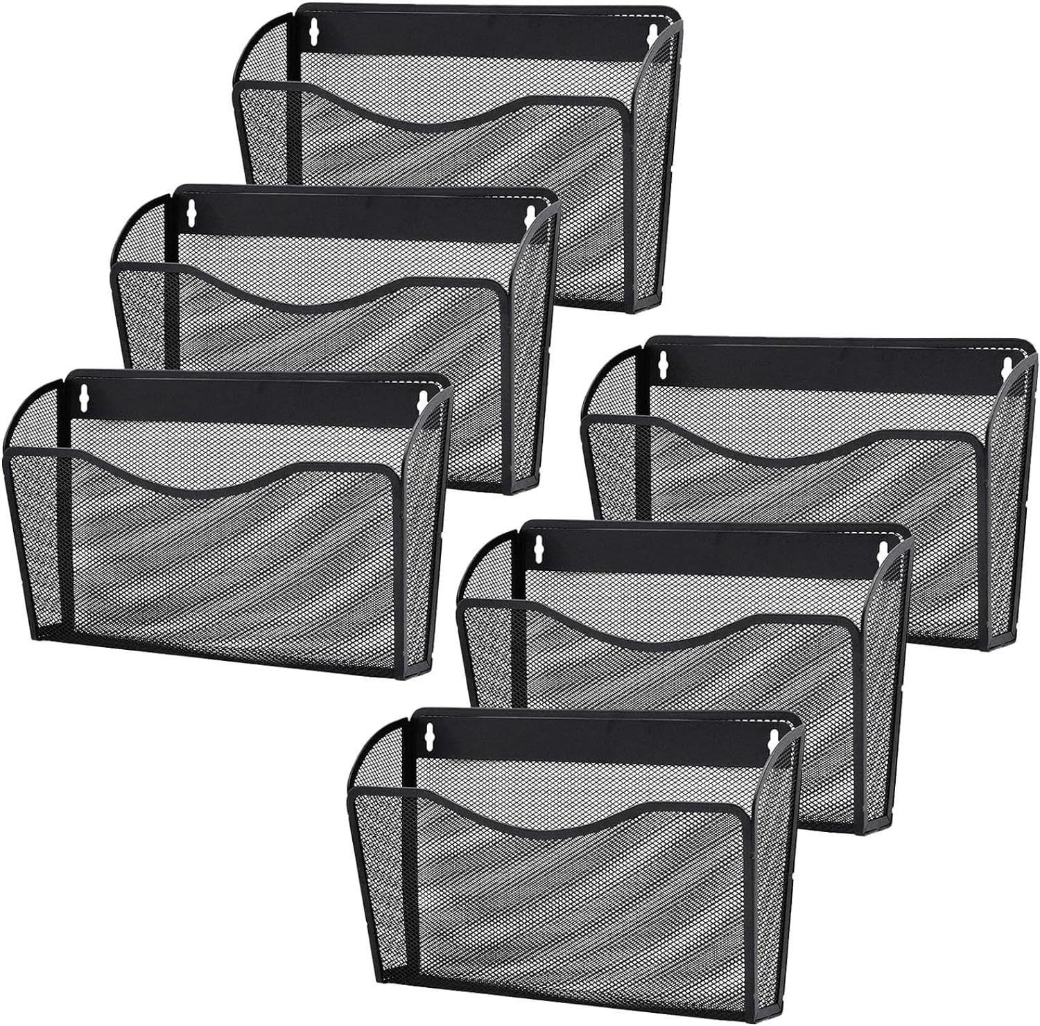 - Organize your files efficiently with this 6 pack wall file organizer, featuring a mesh hanging metal design for vertical wallmounted storage.
