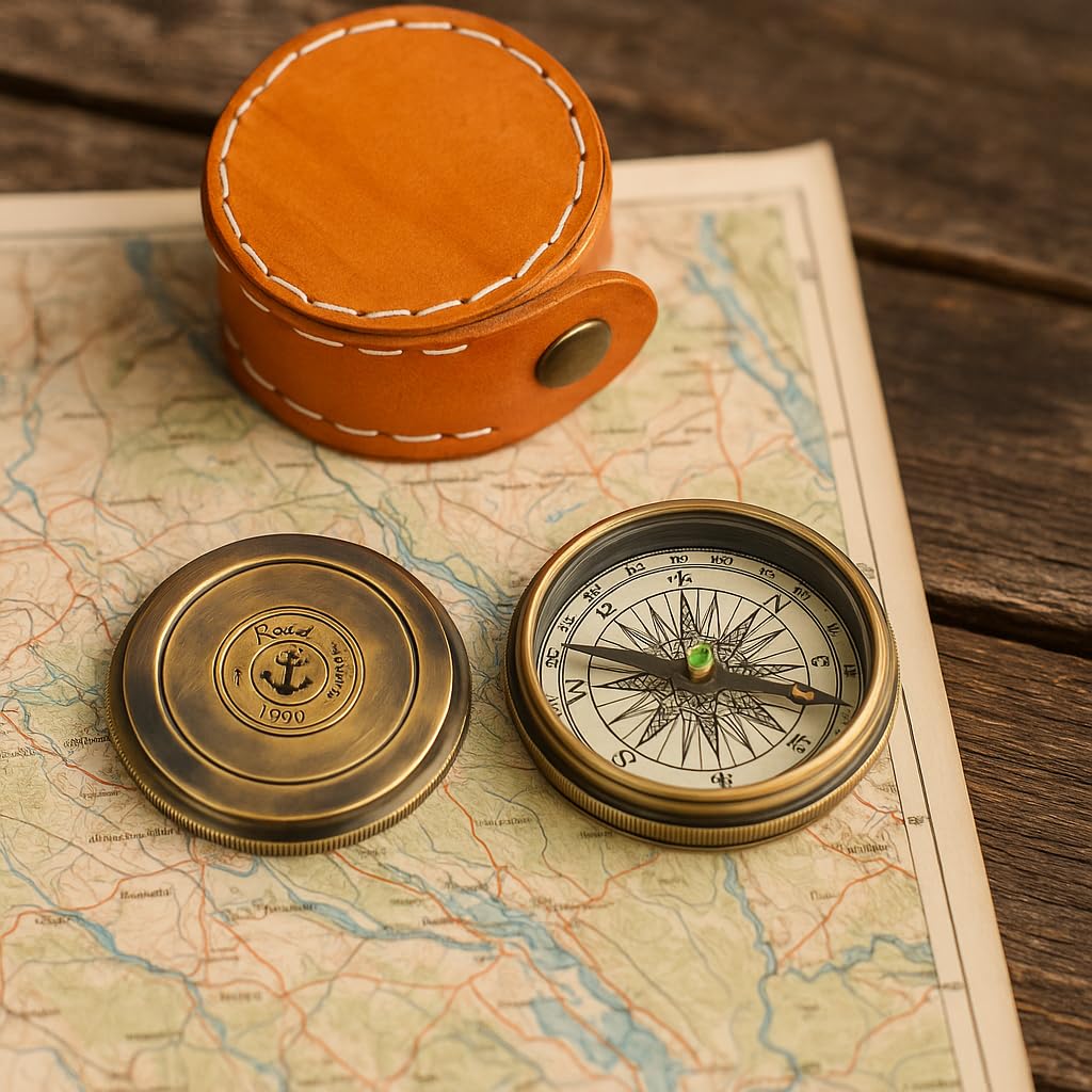 - Brass Pocket Compass with Removable Lid is a beautiful solid brass reproduction of an antique air-damped compass. Top of the Lid is engraved. The high quality jewelled compass needle settles to North very quickly for timely and accurate readings. The brass cover that unthreads and rethreads onto the opposite side where it functions as a holder.