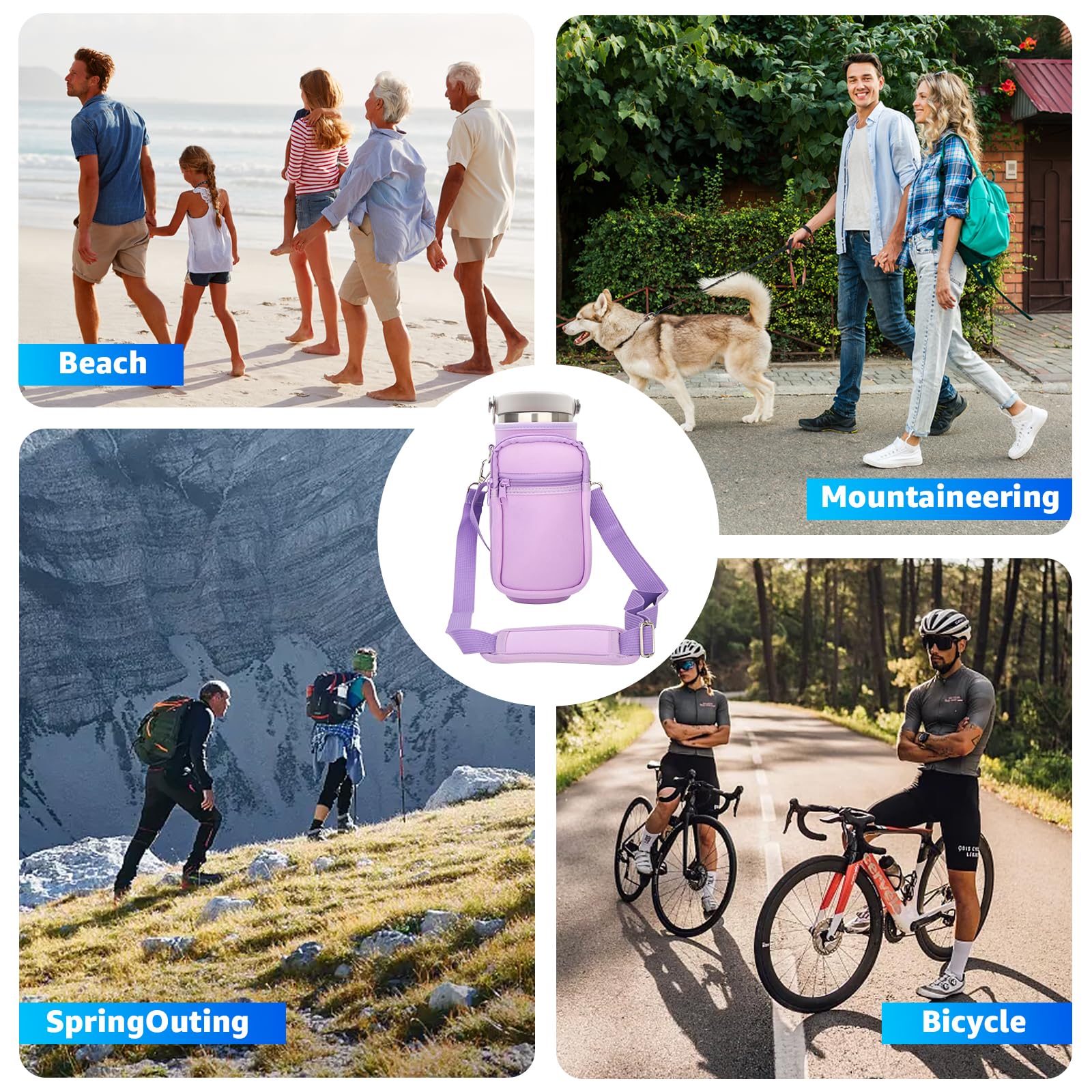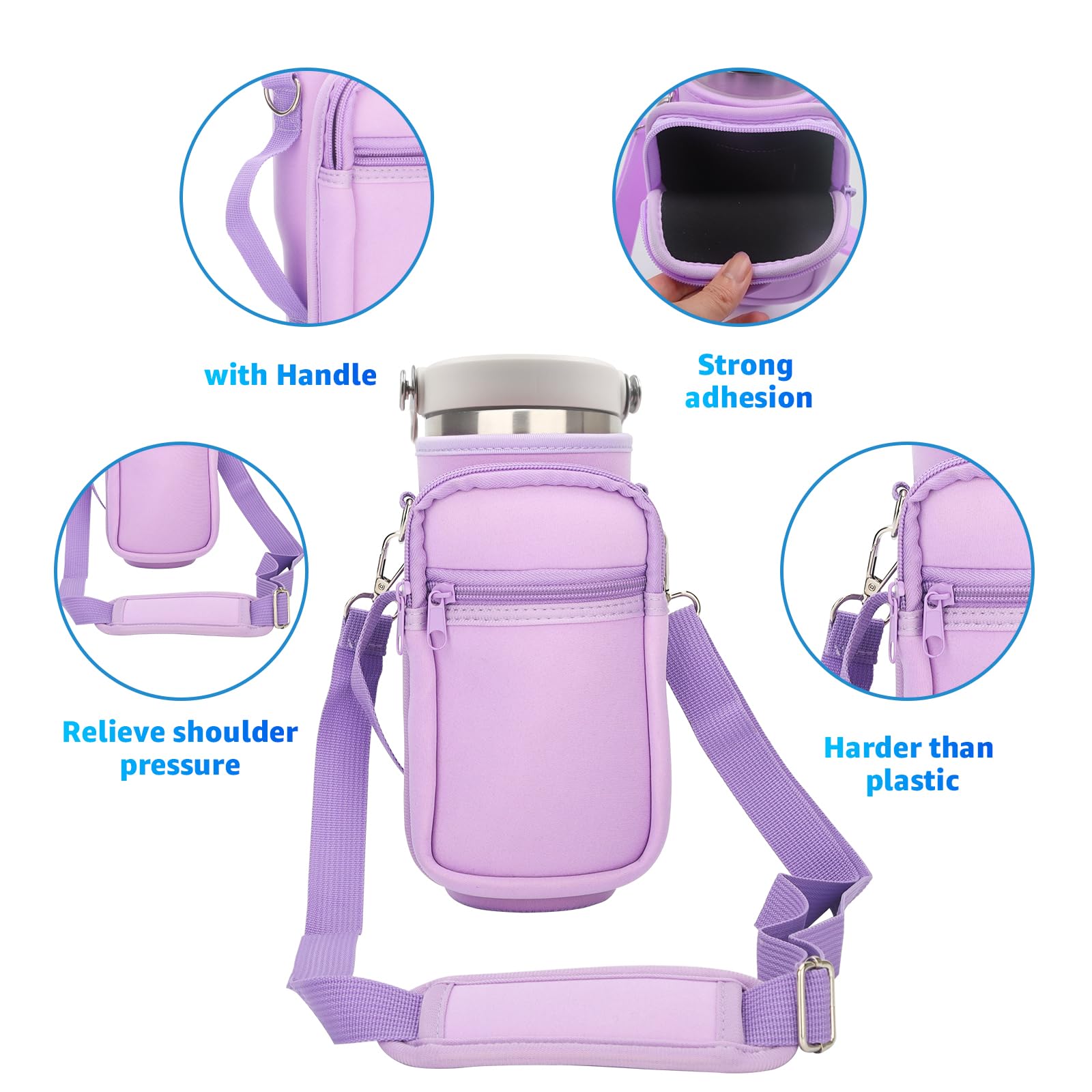 for Stanley Iceflow Flip Straw Tumbler 30 oz, Water Bottle Cup Holder Cover Carrier Sling Bag with Strap, Pouch Pocket for Phone / Accessories, add Handle for Stanley Flip Straw, Neoprene (Purple)