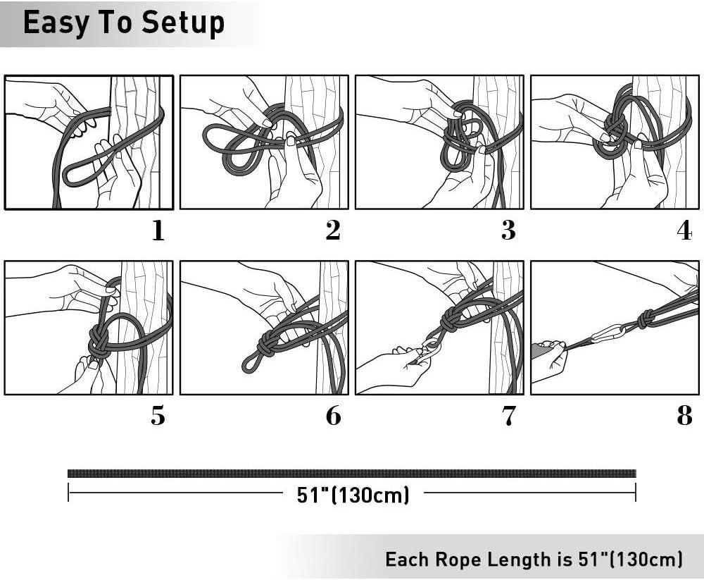- Easy Setup: Takes less than 3mins setting up the hammock; Suggested safety height between the hammock swing and the ground to be less than 50cm