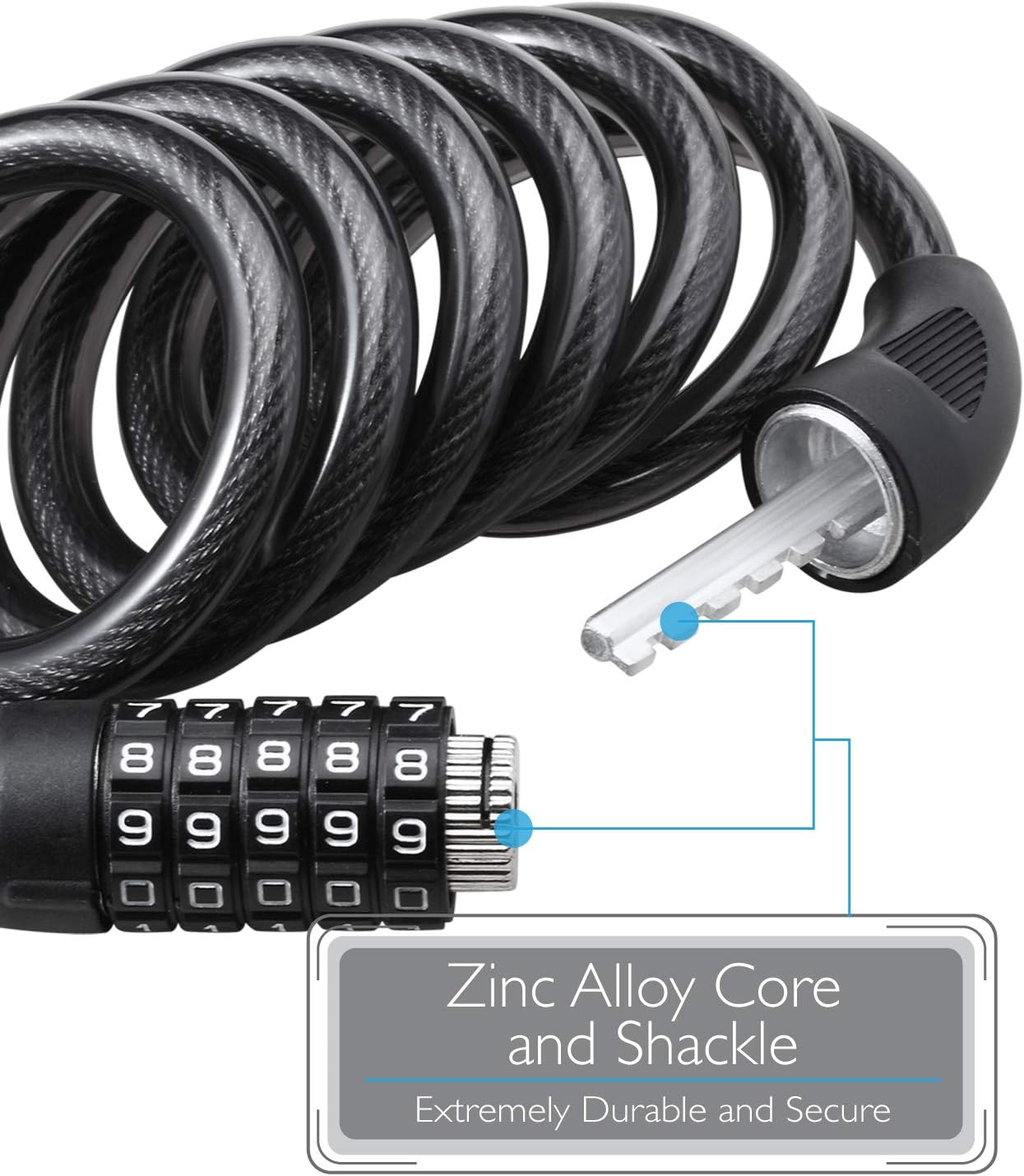 - [100,000 COMBINATION POSSIBILITIES] With 100,000 possible combinations, the 5 digit cable lock is nearly impossible to break into. The lock offers you 90,000 more combinations than the typical 4 combination lock.