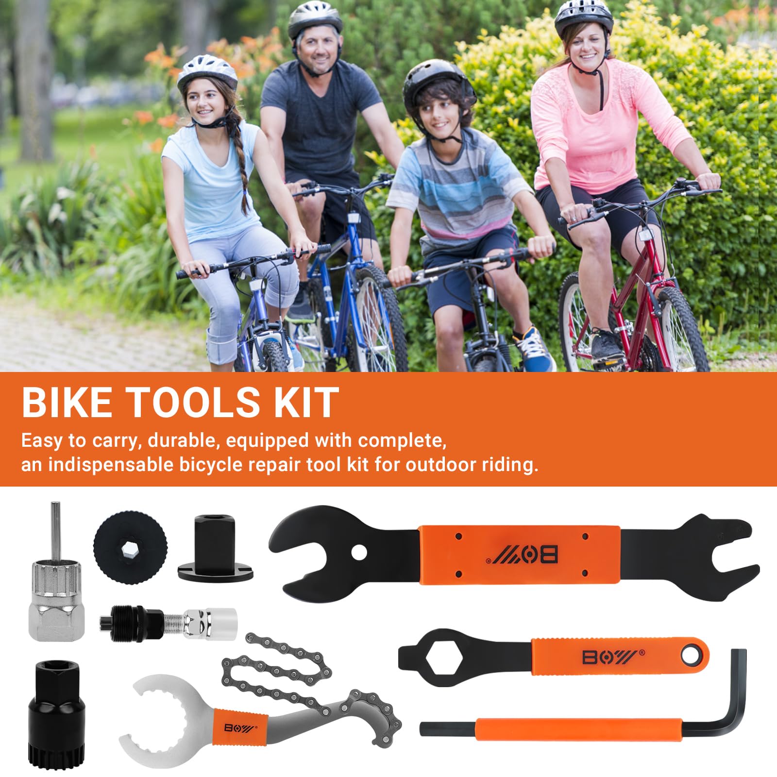 FOUUAAOOU Bike Tools Kit, Has 3 in 1 Bike Cassette Removal Tool, Bike Pedal Wrench, Bicycle Crank Removal Tool, Bottom Bracket Remover and Rotor Lockring Removal Tool, Bike Repair Tool Set