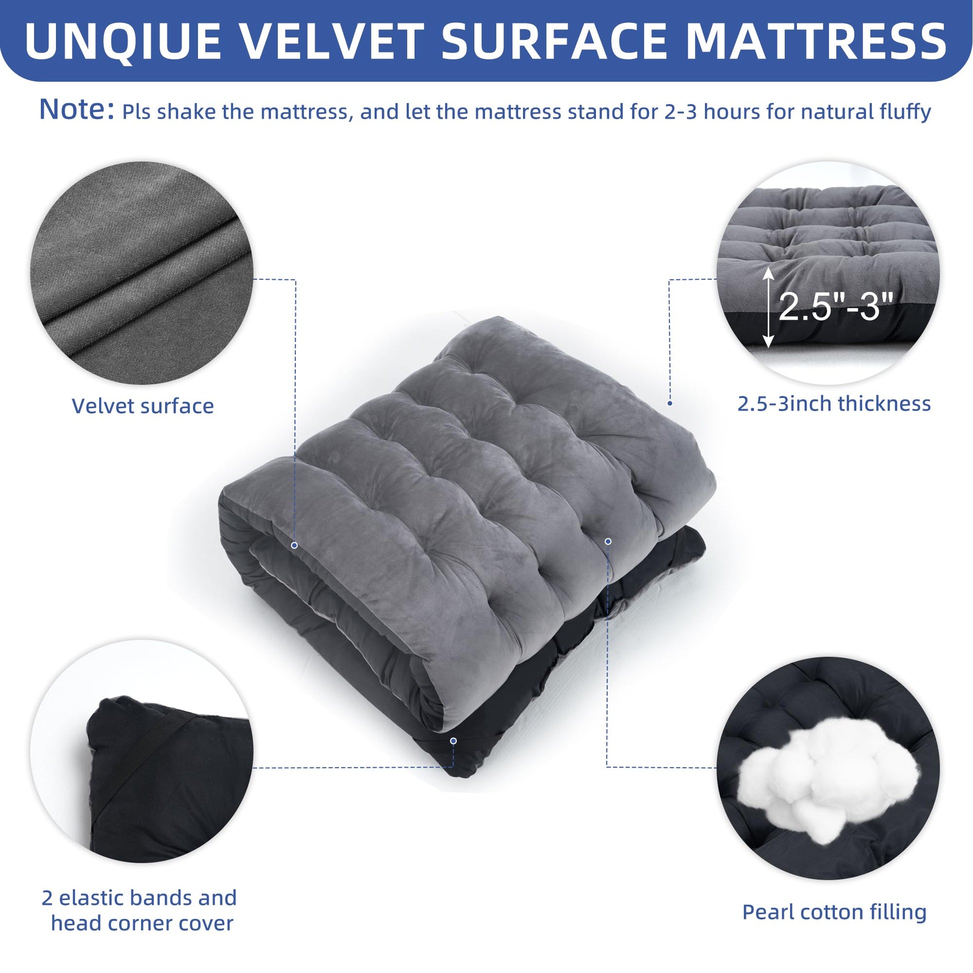 - Camping Cot with Mattress for Adults: 3-inch ultra-thick mattress and skin-friendly velvet cover to support maximum comfort. The cot mattress has elastic corners on the bottom and a wrap-around top that help keep it in place. NOTE: The mattress comes in a vacuum-sealed bag, please knead the mattress repeatedly and leave it for several hours to fluff it up.