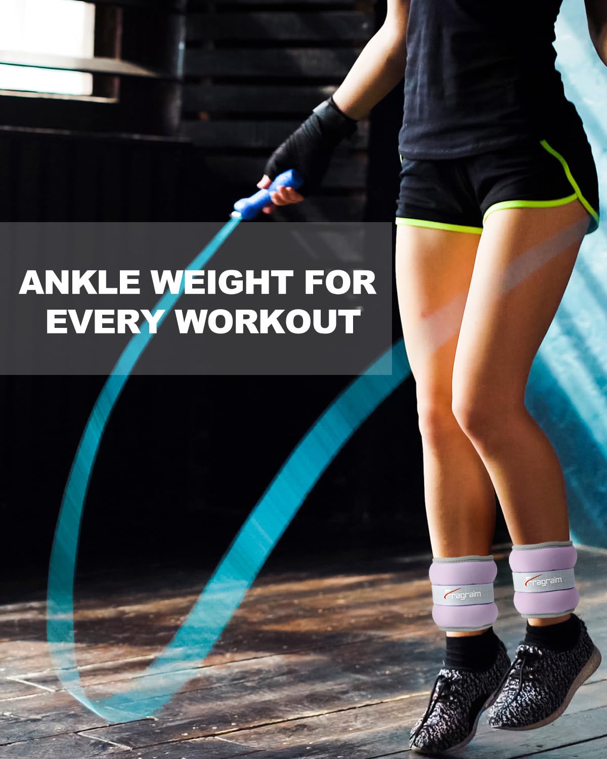 Fragraim Ankle Weights for Women Men Kids 1.5lbs x 2 Leg Arm Wrist Weights with Adjustable Strap for Running, Walking, Pilates, Gymnastics, Aerobics- Purple