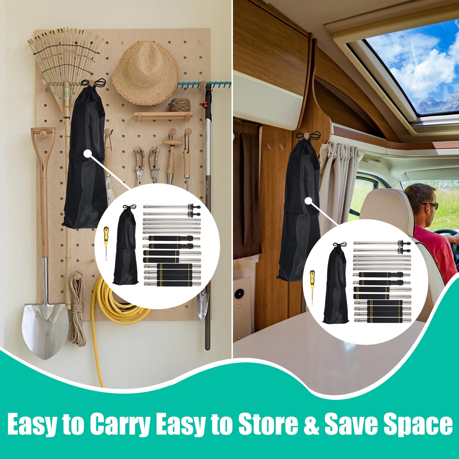- 【2PC Telescopic Tarp Poles】 The length of the canopy pole can be adjusted from 2.75Ft to 9.5Ft. Tent poles for tarp have firm counter-locking buckle can let you not worry about the length sliding after telescoping. You can adjust the shade sail poles length according to your different needs.