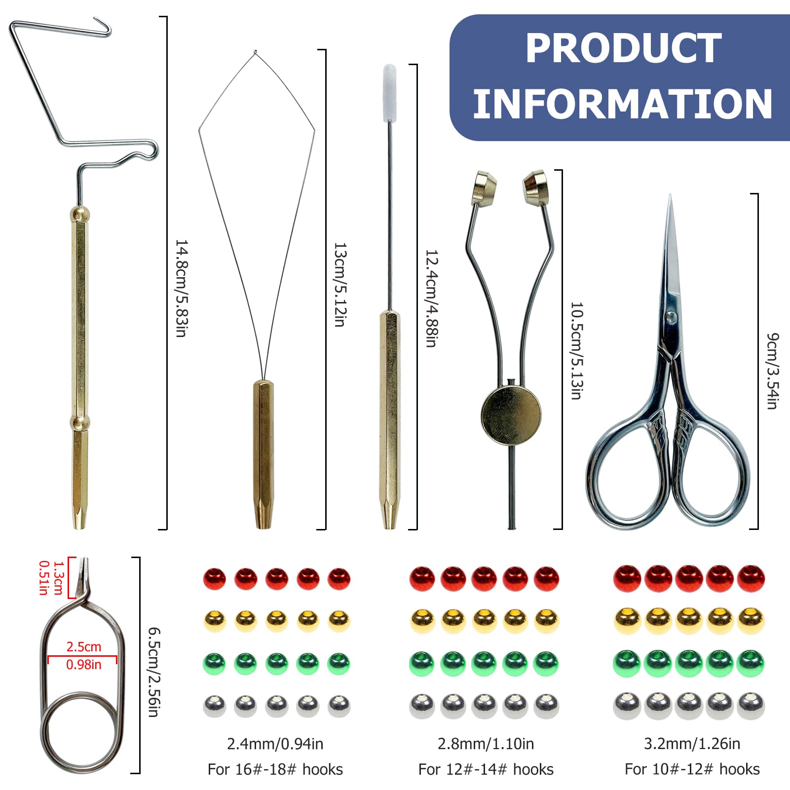 - 149Pcs Includes:Hook Tying Kit(6pcs)*1; Fly Tying Beads*60pcs; Fly Hooks*60pcs; Dubbing*6pcs; Flashabou*8pcs; Fly Tying Thread*8pcs. All tools and materials are neatly placed in the portable Carry Bag; complex and various tools & materials,just FREE FISHER one kit, easy to handle!