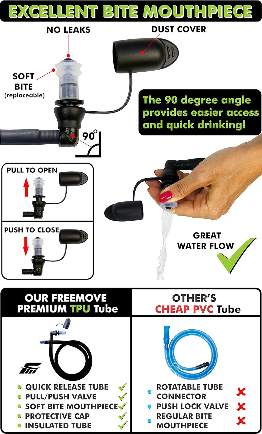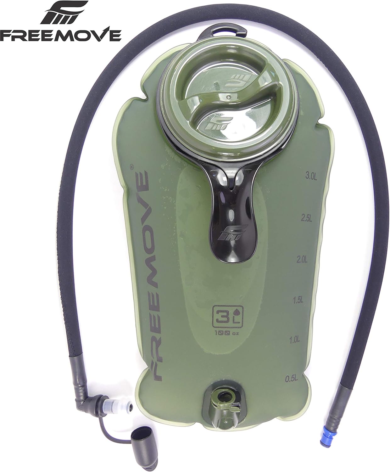 FREEMOVE Hydration Bladder 2L / 3L Water Bladder for Hiking Backpack >Blue or Green< Leak Proof Hydration Pack, Tasteless & BPA Free, TPU Water Reservoir, Quick Release Insulated Tube & Shutoff Valve