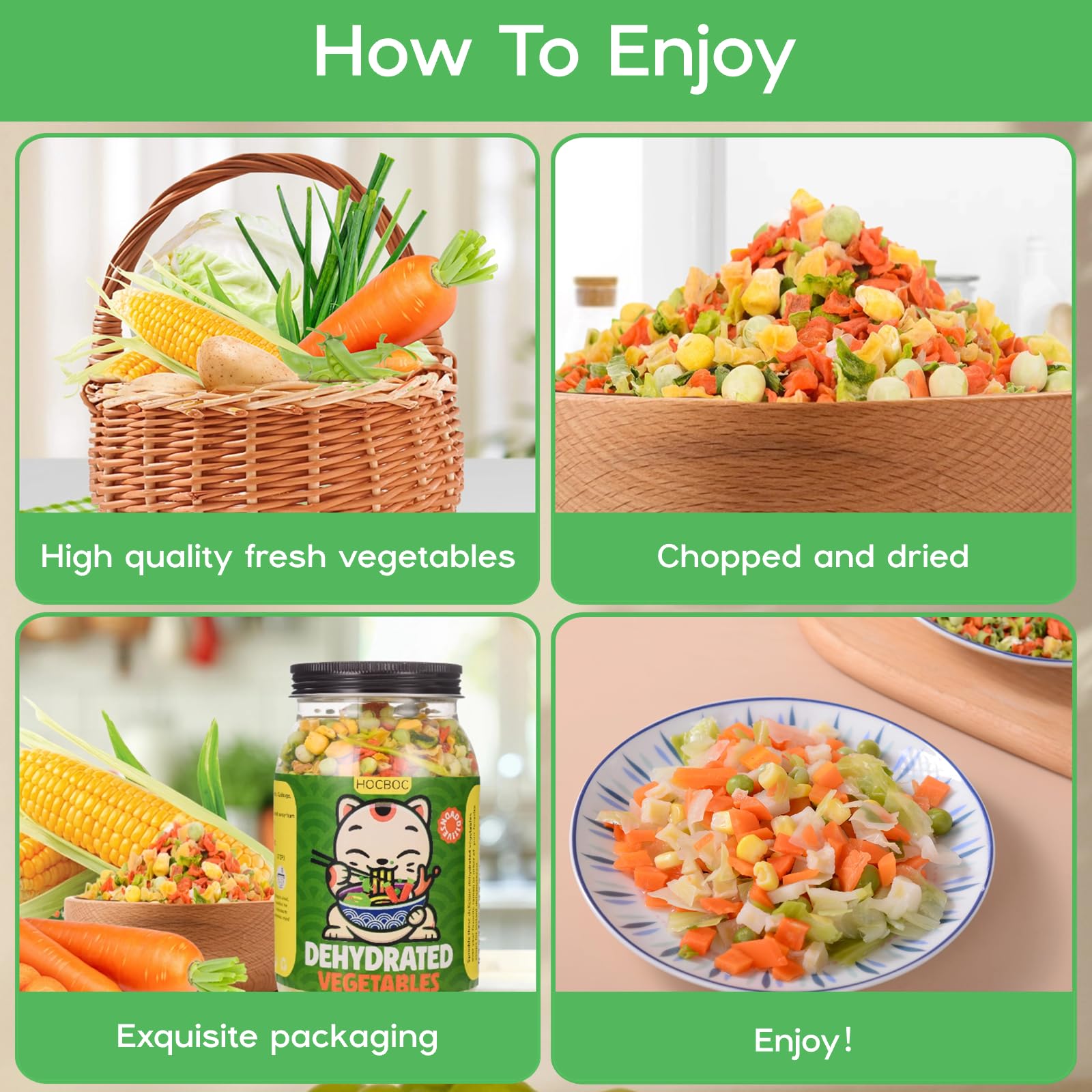 Freeze Dried Mixed Dehydrated Vegetables - 10.58oz Natural Ramen Toppings Vegetable Flakes, No Gluten& No Allergen, Dry Veggie for Cooking, Camping, Emergency Supply