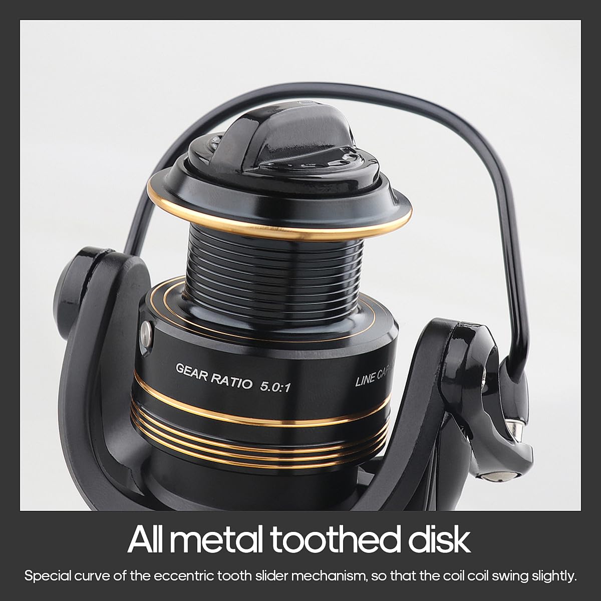 Frwanf Spinning Reel, Freshwater and Seawater Fishing Reel, Max 17.6lb Carbon Resistance, High Speed Gear Ratio, Premium New Rolling Bearing and Drive Gear, Metal Spool and Handle (FMCF2000)