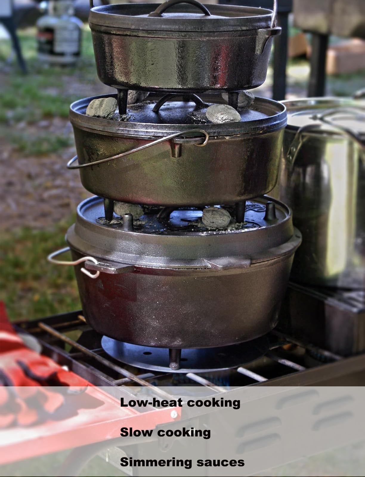 - 【Low-Heat Cooking】 Camp chef flame tamer heat diffuser plate is designed to authorize a much better degree of management over the warmth produced by open campfires. The camp chef heat diffuser is the perfect tool for improved heat control to spread and equalize the heat, makes low even heating easily, perfect heat control for low-temperature slow cooking, do a good job of preventing sauces from scorching in the pot or keeping liquids from spilling over.