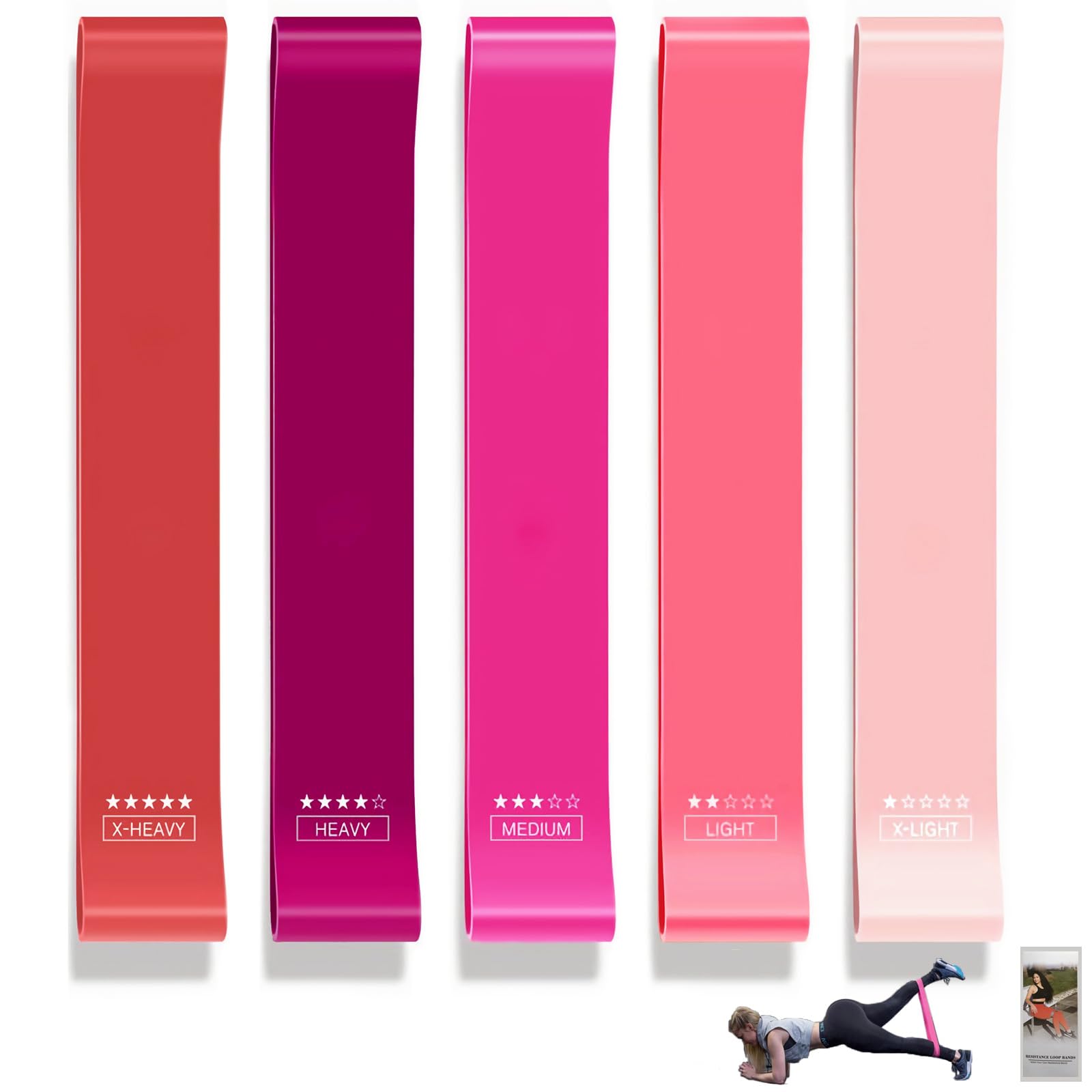 - 🍑HIGH END EXERCISE BANDS- professional resistance loop bands includes 5pcs different levels , they are all 12in length and 5in width, but different thickness. According to your training needs at different stages, you can match the exercise bands with the appropriate resistance level, So Whether you are a fitness beginner, or a exercise warrior, Our workout bands will be your perfect choice.