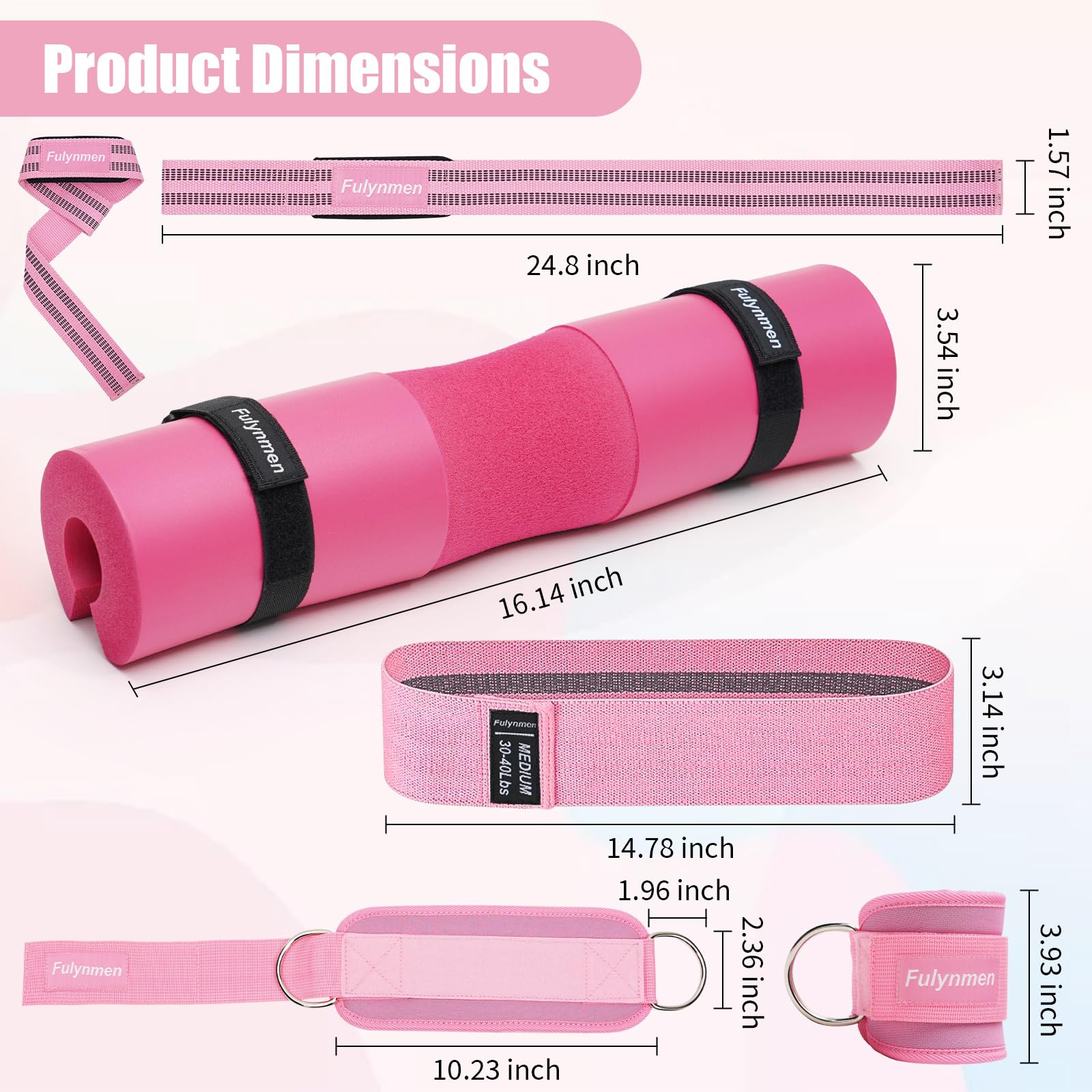 Fulynmen 9Pcs Barbell Pad Set, Hip Thrust Pad, Squat Pad, Gym Accessories Essentials Women Equipment With Barbell Pad for Hip Thrust, 2 Lifting Wrist Straps for Weightlifting, 2 Ankle Straps for Cable Machines, 3 Resistance Bands for Working Out, Carry Ba