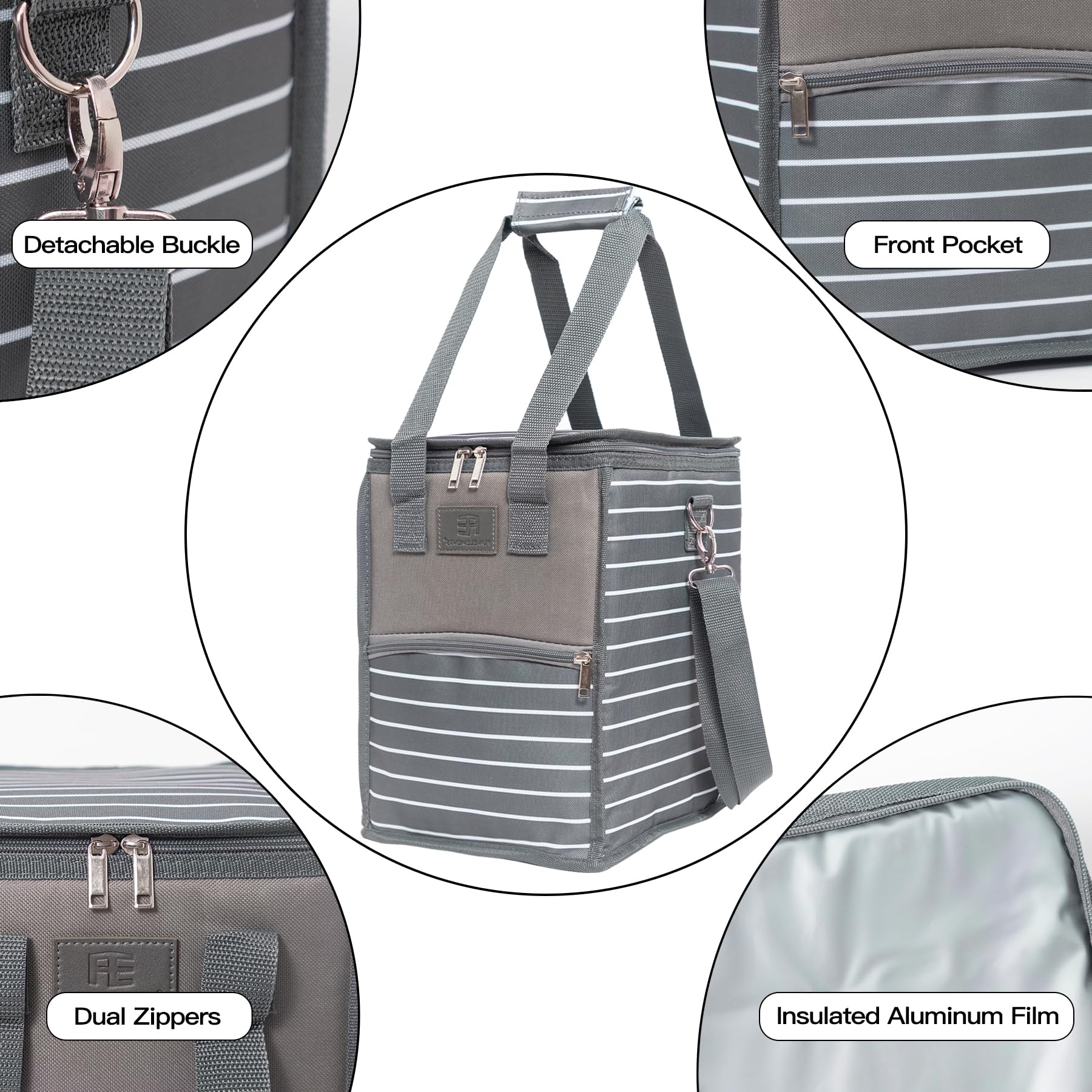 - Stay Organized: Measuring 9" x 9" x 12.5" inch, hold up to 18 can normal 355ml bottles, this Camping Cooler Tote Bag also features a convenient front pocket for quick access to essentials like cutlery, napkins, and corkscrews—keeping everything you need within easy reach
