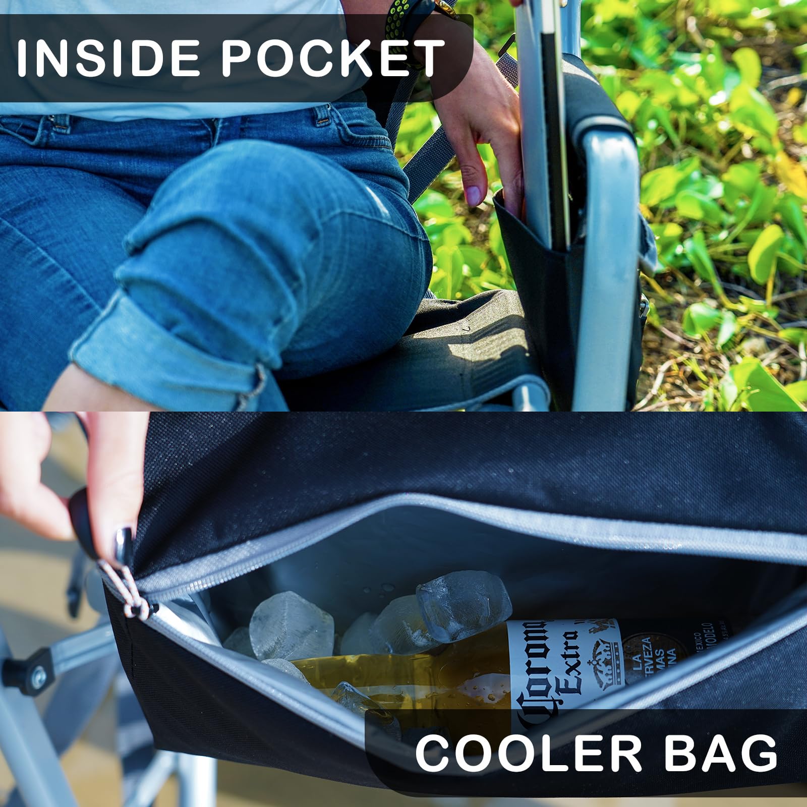 FUNDANGO Rocking Camping Chair for Adults, Oversized Portable Rocking Chair Outdoor Folding with Cooler and Side Pocket for Outside, Backyard, Patio, Lawn, Garden (Black/Grey)