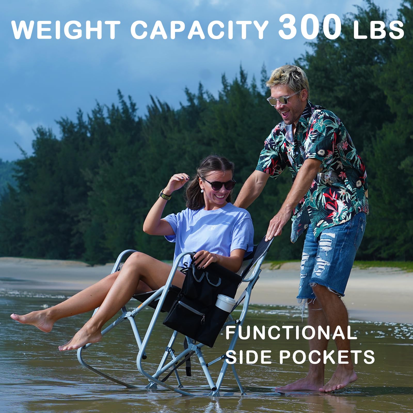 - 【ULTIMATE COMFORT】High-backed, wide seat, and a smooth rocking design make the outdoor rocking camping chair offer you an ultimate comfortable seating experience. Smooth rocking on any surface, anywhere, no worries!
