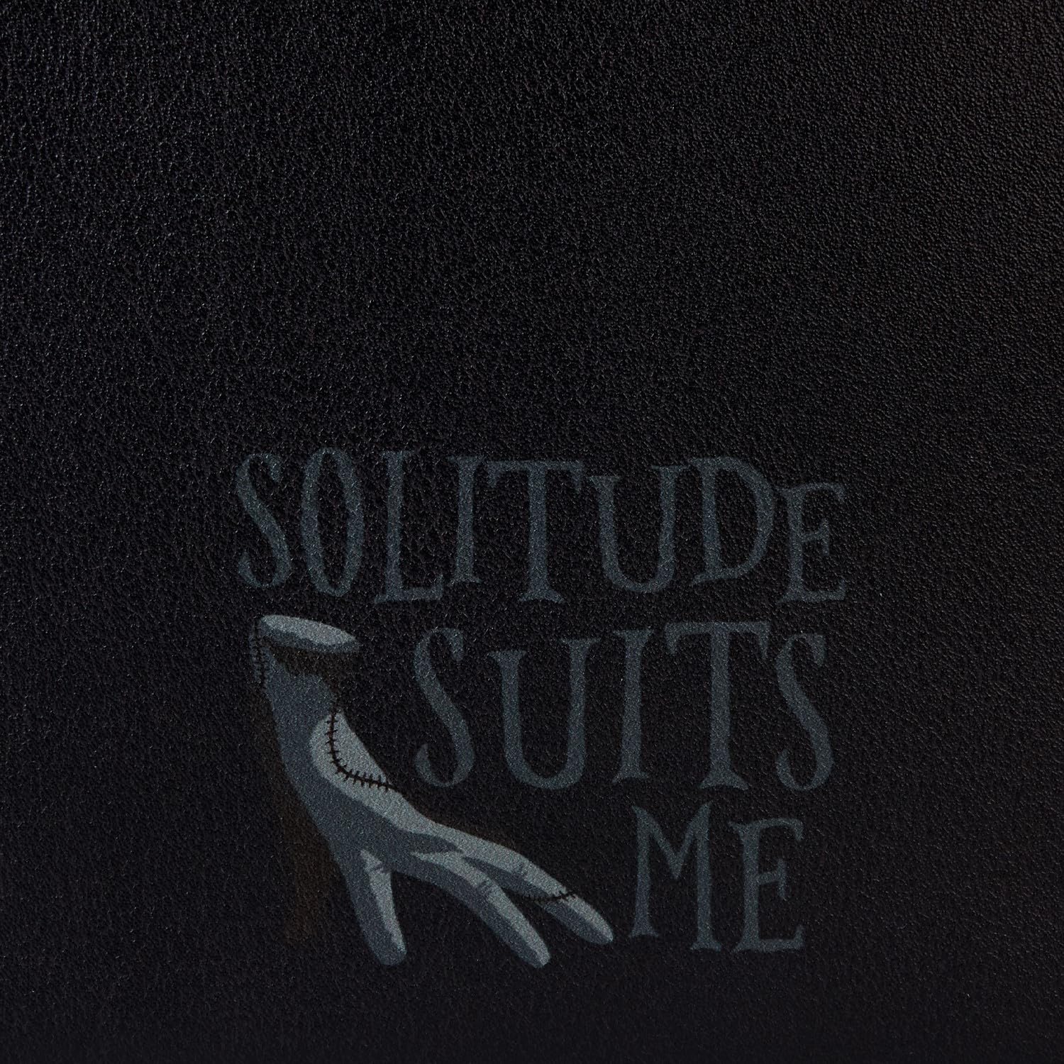 Stroll the halls of Nevermore Academy in style with the Wednesday Funko Mini Backpack! The front pocket of this black and grey mini backpack features POP! Wednesday Addams performing a cello solo, illuminated by her dormitory window. This eerie accessory has plenty of room for holding all of your belongings whether you are on your way to class or picking up a new extracurricular! Backpack is made of vegan leather (polyurethane) and has adjustable shoulder straps. Additional features include sturdy metal hardware and printed details. This backpack is an officially licensed Wednesday product. Approximate dimensions: 8.25” W x 10.75” H x 4” D. (Please note: width is measured across the bottom of the bag.)