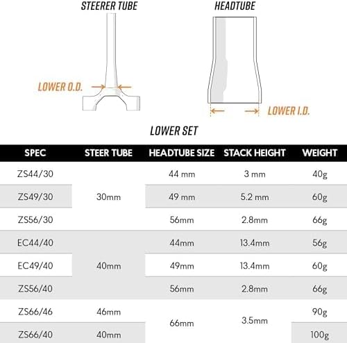 - Measure the size of fork steer tube and frame headtube before purchasing. This lower version is for 44mm headtube inner diameter, and 30mm steerer tube diameter.