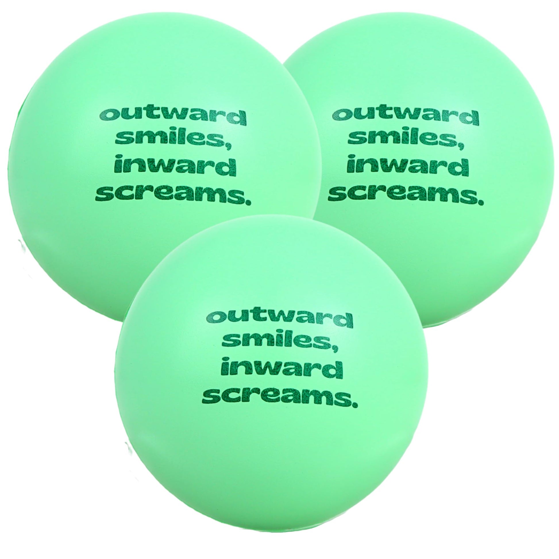 - 3 PACK STRESS BALLS: "Outward Smiles, Inward Screams" Stress Relief Balls offer a hilarious and relatable way to lighten the mood and relieve stress. Squeeze away the tension while enjoying a good laugh with this amusing and entertaining stress relief tool. INTENDED FOR AGES 15 & UP