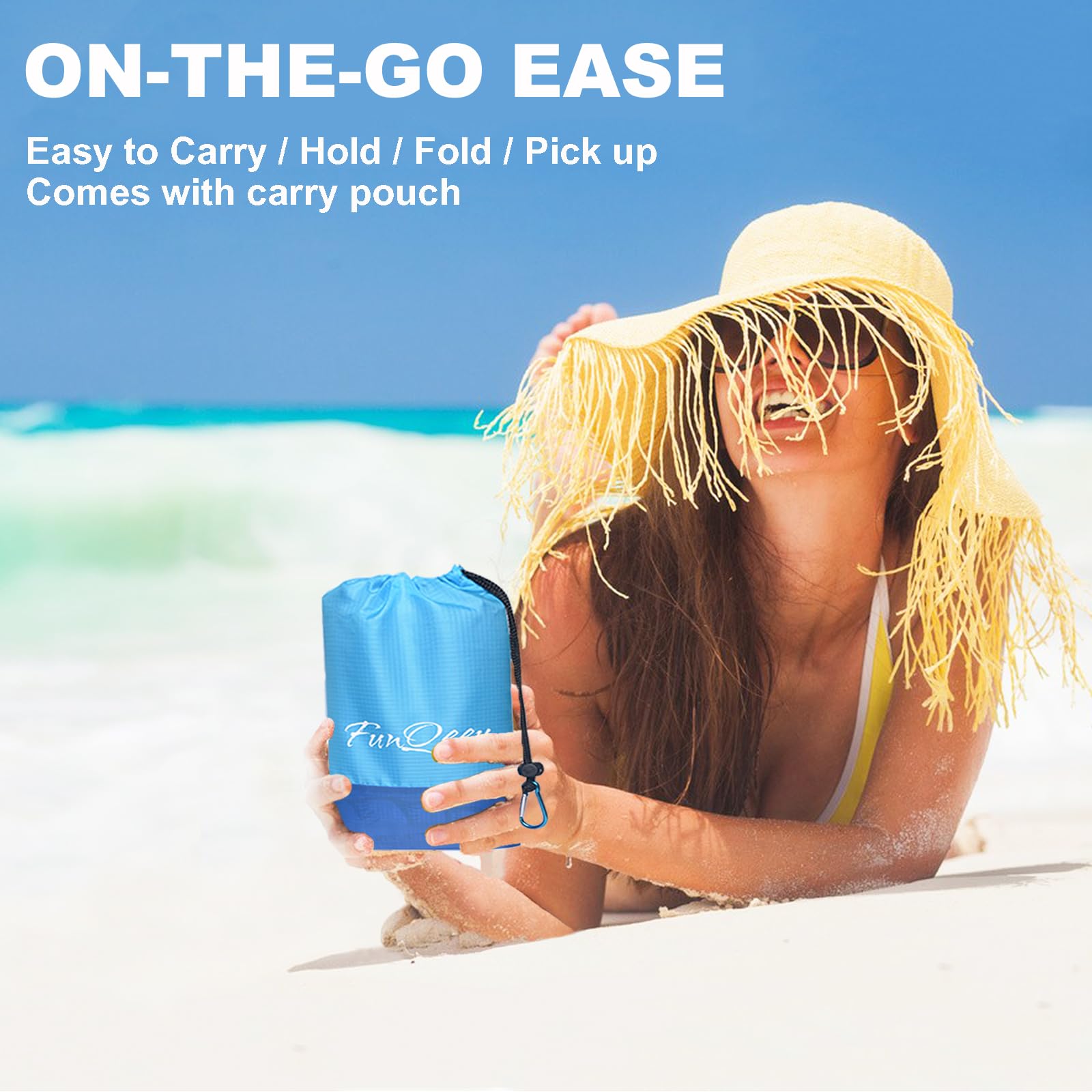 FunQeeu Beach Blanket, Large 83" X 79" Family Size Beach Mat Picnic Blanket Sandproof for 2-8 Adults Compact Lightweight Outdoor Accessories Portable Waterproof Mat for Travel Camping Hiking Vacation