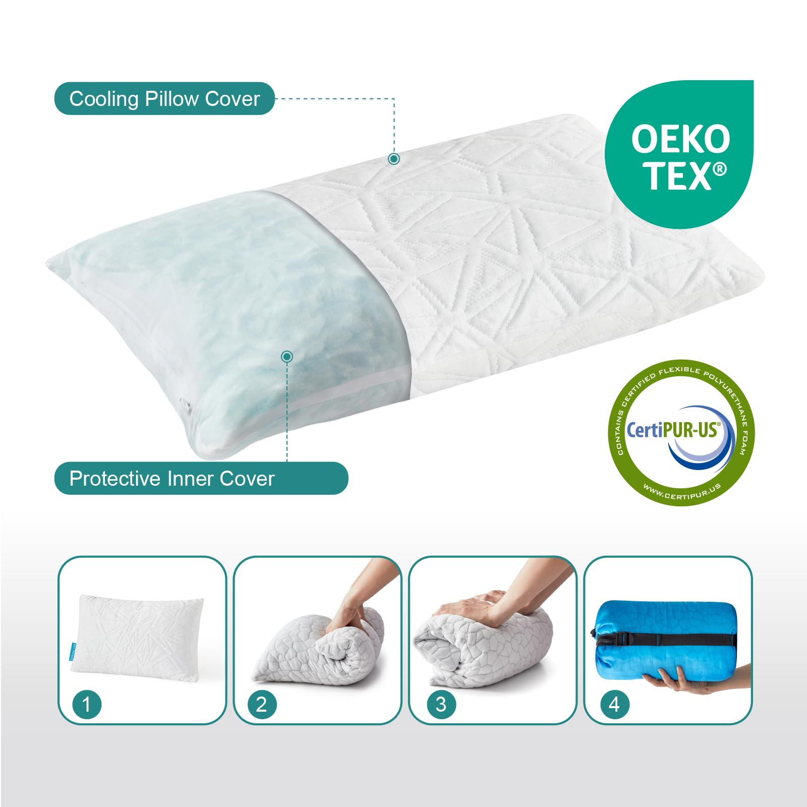 - 【Cooling and Breathable】Furlupy Camping Pillow features with its double-sided cover for cooling & soft touch. The cooling side uses latest cooling technology, offering you an instant cooling experience. if cold nights, sleep on the soft breathable bamboo side for a warm sleep. it is moisture-wicking and lightweight, travel essentials & Must Haves