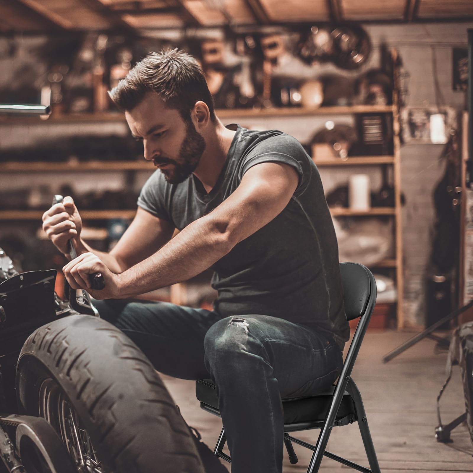 fusehome Mini Folding Chair, Garage Stool, Portable Camping Chair with Padded Seat, Lightweight and Compact Lawn Chair, for Patio, Garage, Camping, Fishing, Hiking, Hunting, Picnic, Beach, Black