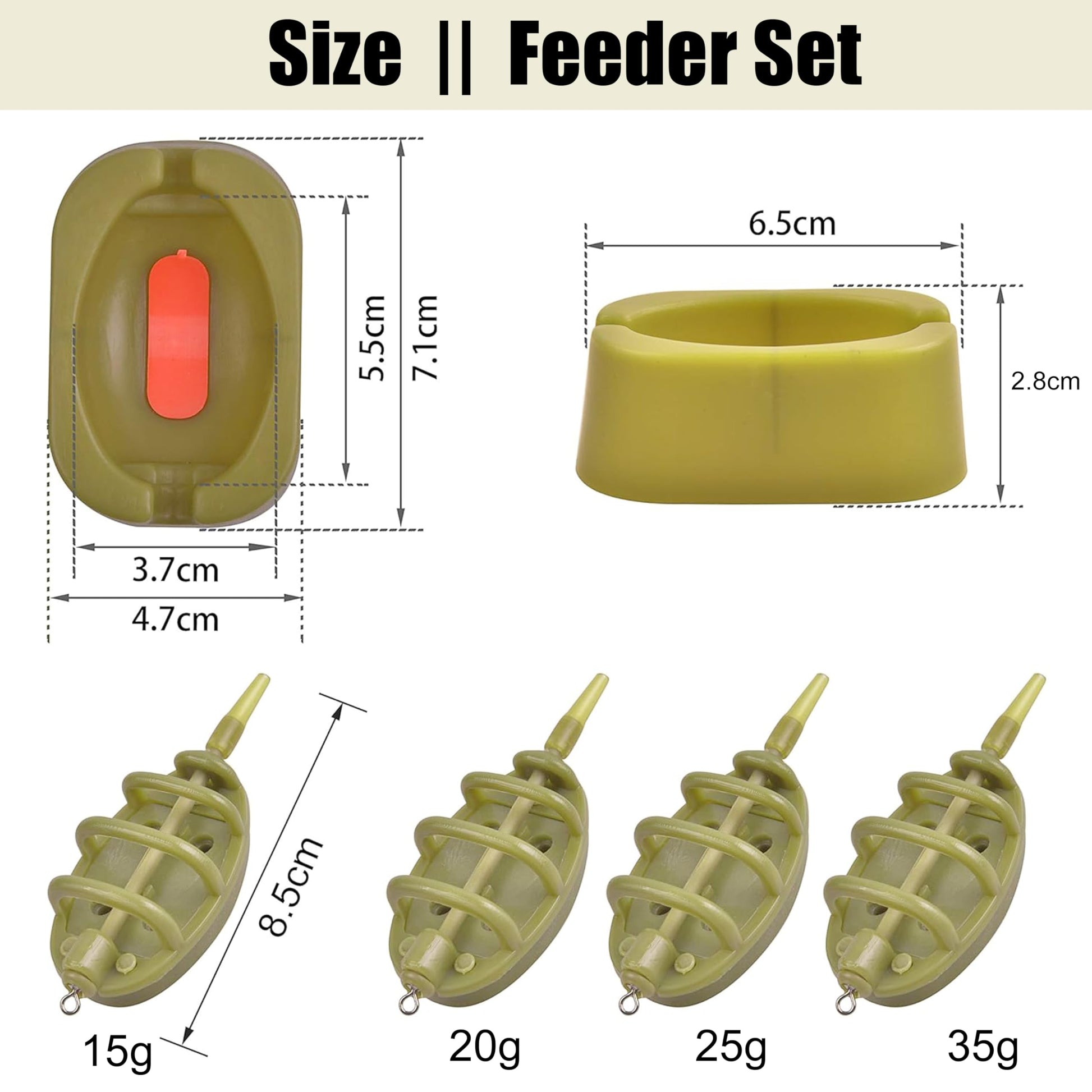- PACKAGE : 5Pcs Inline Method Feeder Set, 4 kinds of weight: 15g/20g/25g/35g, with 1 Quick Release Mould. Carp fishing feeder equipment are corrosion resistance, smooth surface, strong tension, long time using will not rust.