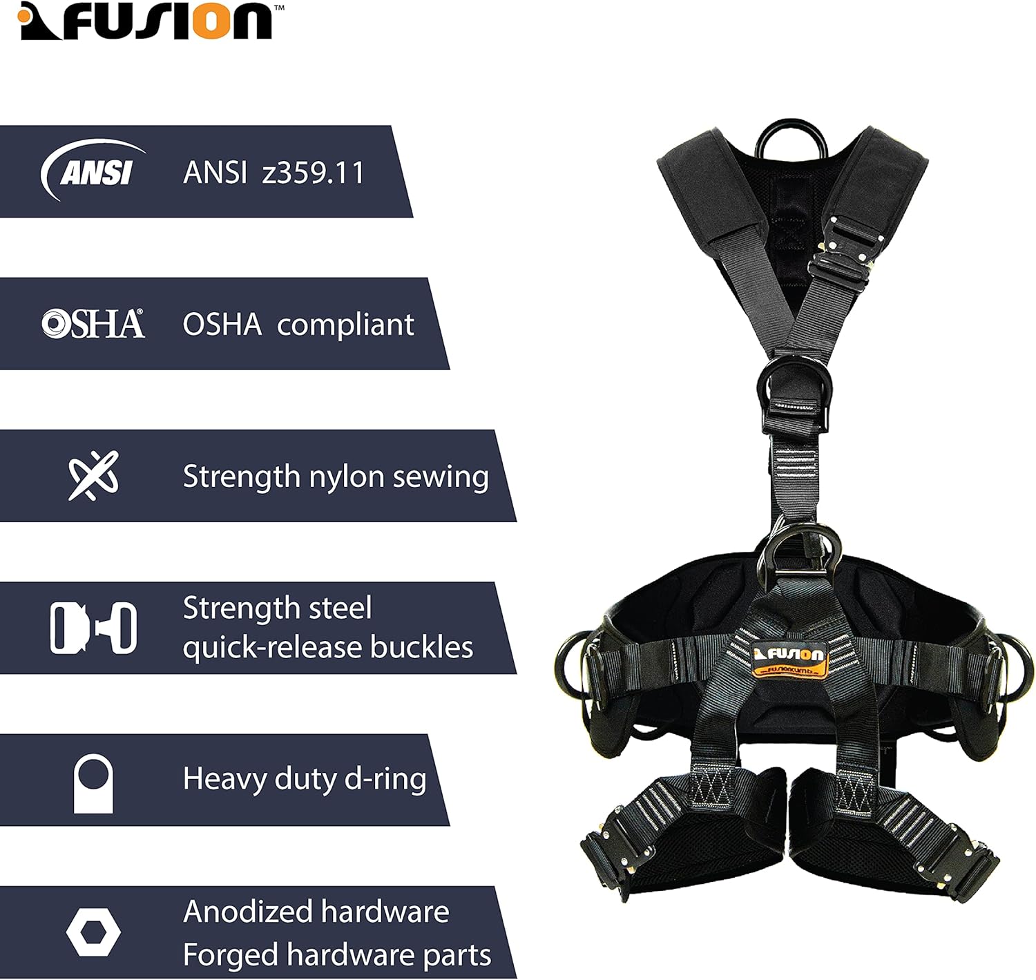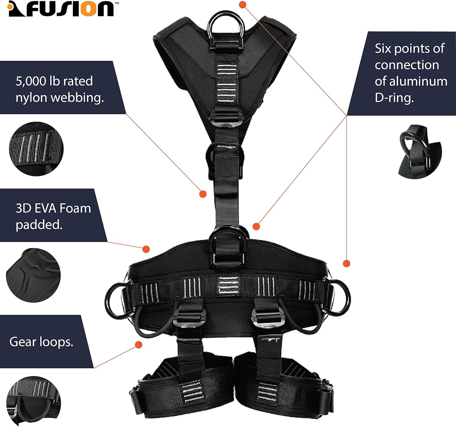 Fusion Climb Tac Rescue Tactical Full Body 3d Eva Padded Heavy Duty Adjustable Zipline Harness 23kn