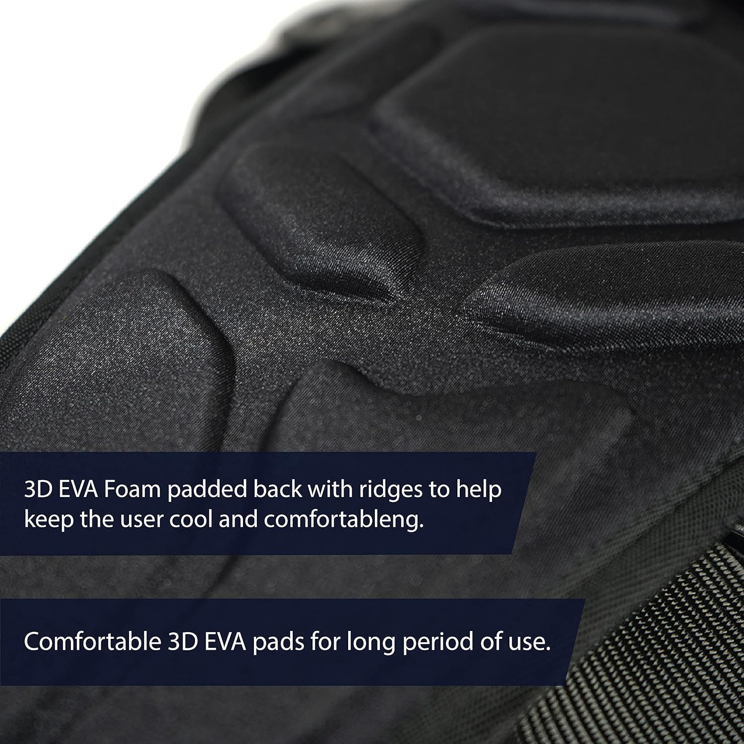 - 3D EVA Foam padding on shoulder, waist, and legs.