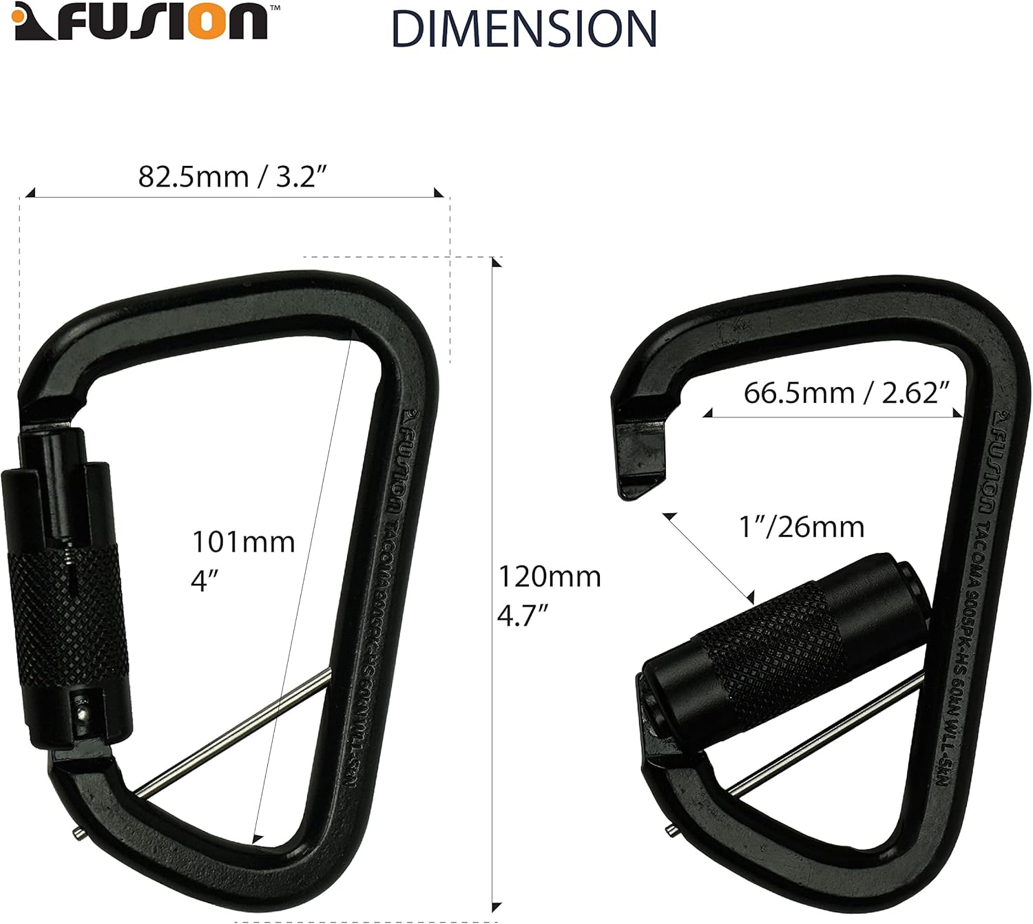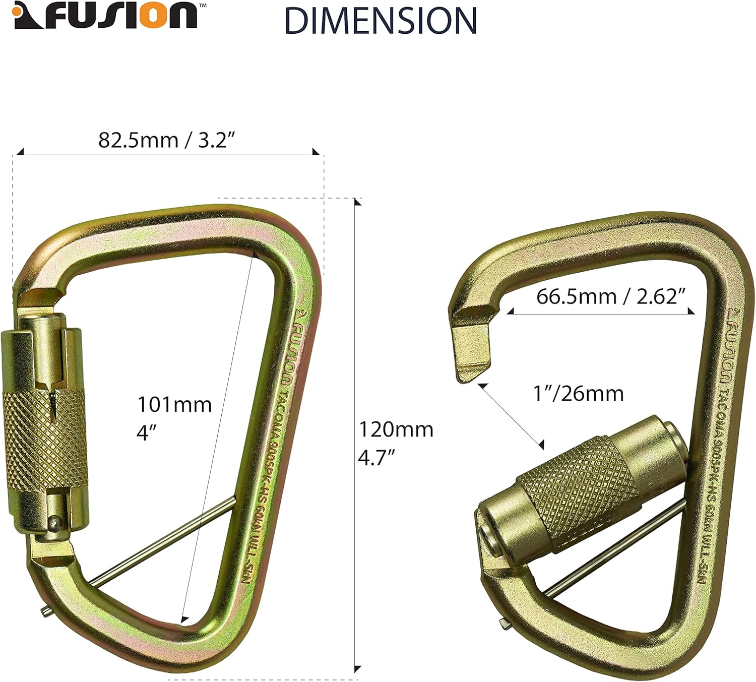 Fusion Climb Tacoma Steel High Strength Auto Lock Modified D-Shaped Steel Carabiner, Steel Clip