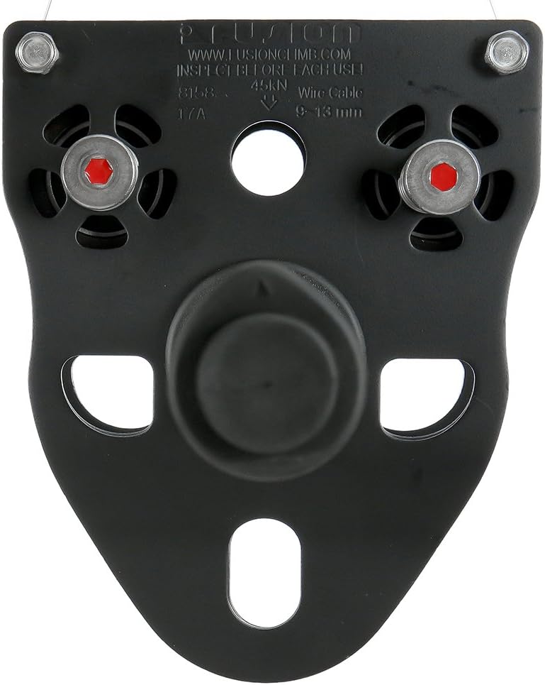 Fusion Climb Z-Max Speed Stainless Steel Pulley Grip Red Trolley - This heavy duty, stainless steel sheaves, complete with dual stainless steel sealed ball-bearing is a choice for enthusiast for maximum speed and adrenaline rush. - It has steel side plates with strength, and handle bar with soft grip for efficient performance fun for all ages. - The Z-Max is stable and amazingly fast, complete with 4 generous attachment points for back up tethers. - High efficiency, 90 m/s. MBS: 45 KN - Minimum required cable Size 3/8". Fusion Climb Z-Max Military Tactical Edition Stainless Steel Zip Line Speed Trolley Pulley with Grip Bars Black 45kN- A heavy duty trolley with stainless steel sheaves, complete with dual stainless steel sealed ball-bearing is a choice for enthusiast for maximum speed and adrenaline rush- Equipped with steel side plates for durability and handle bars with soft rubber gripr for efficient performance fun for all ages- The Z-Max is stable and amazingly fast, complete with 4 generous attachment points for backup tethers- Split open design on bottom for easy setup on cable and closure is done by locking a tether on bottom anchor point- Cable size: 9-13mm, Unit Weight: 4. 27lbs, High efficiency: 90 m/s. MBS: 45 KN.